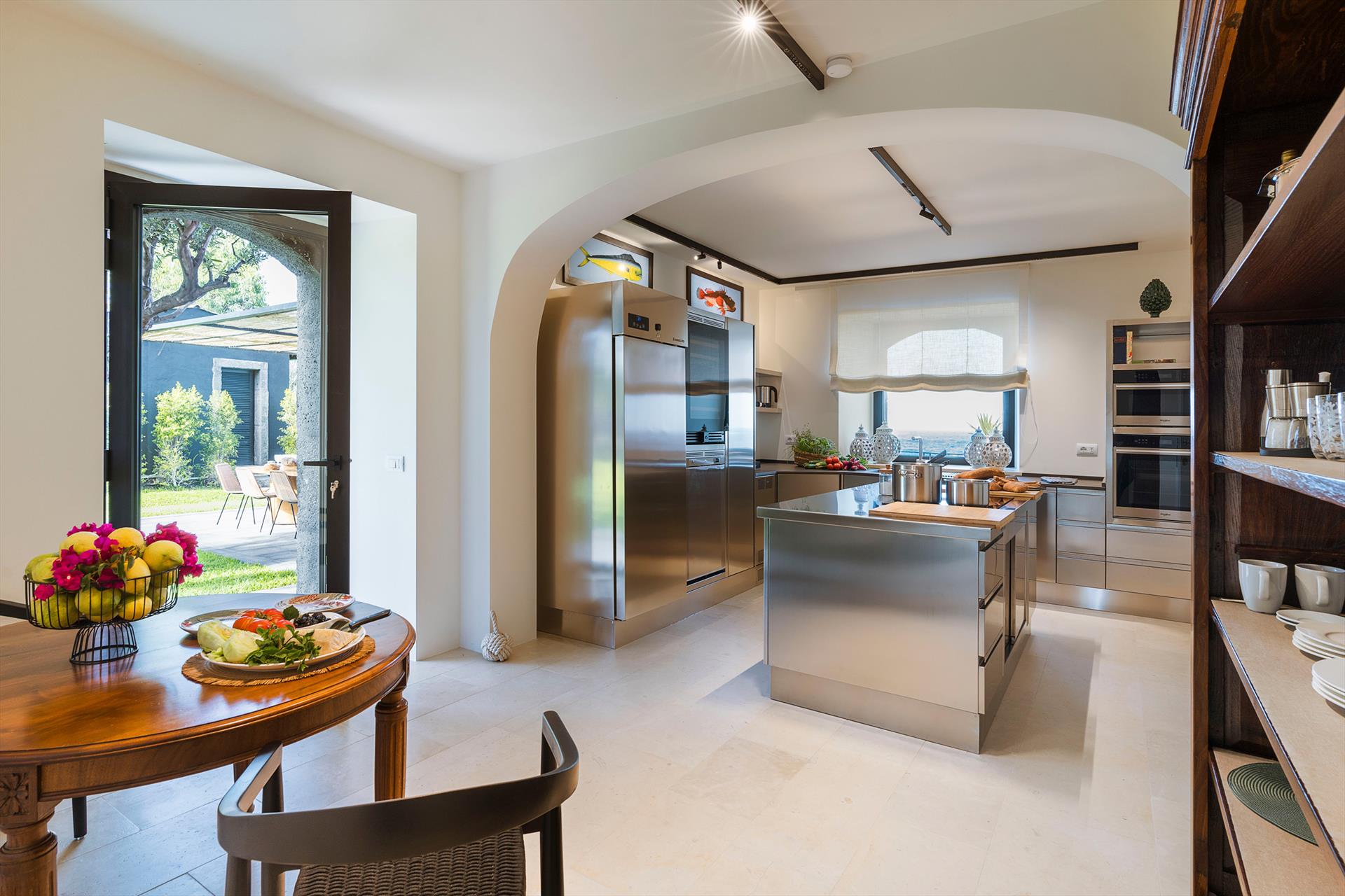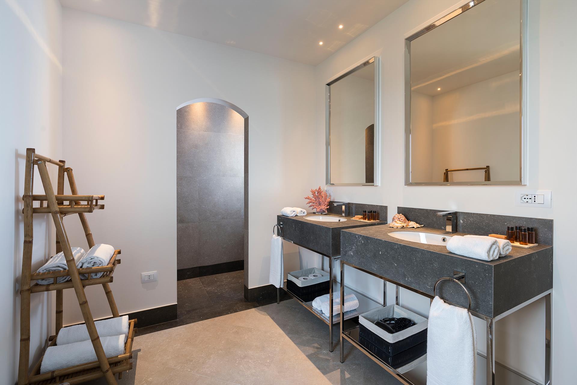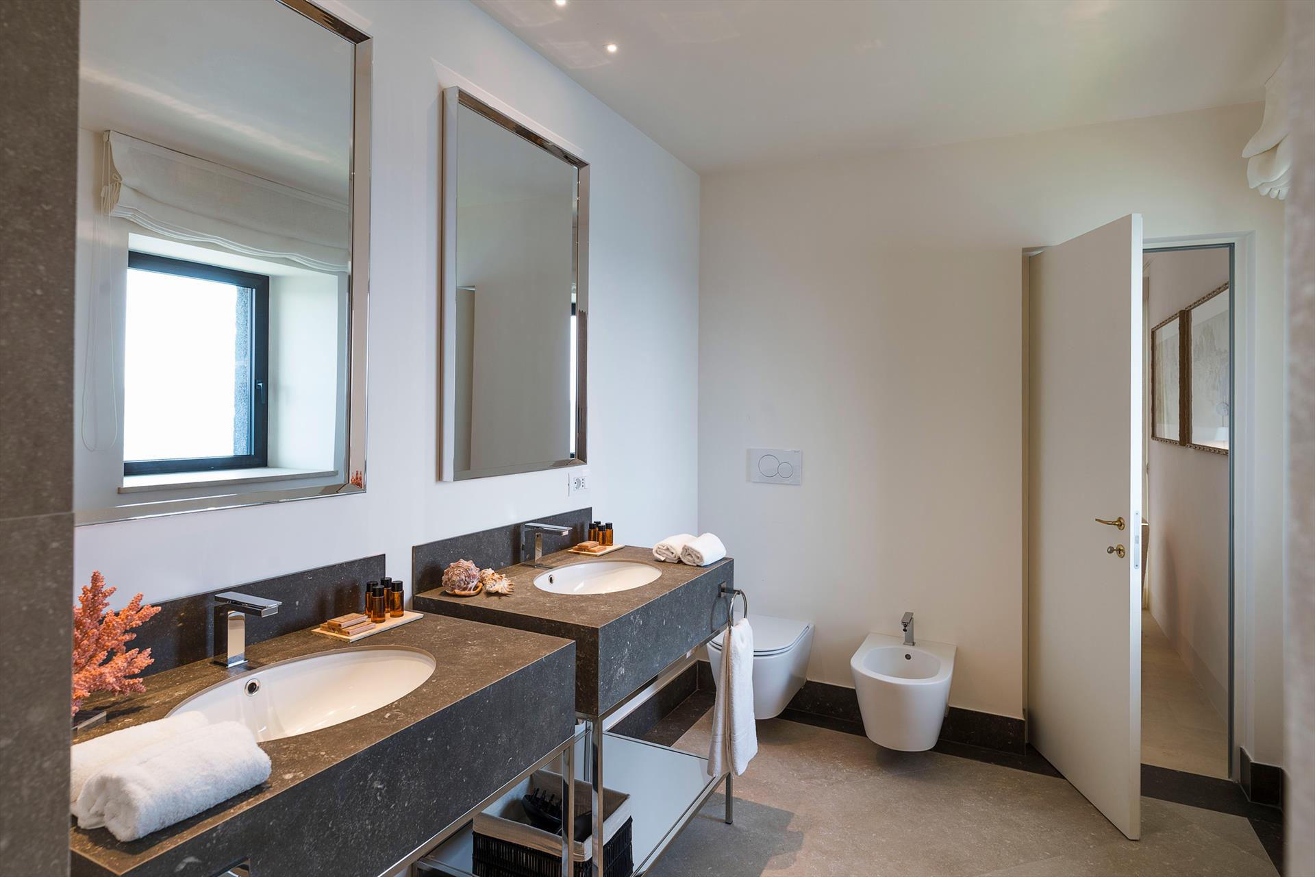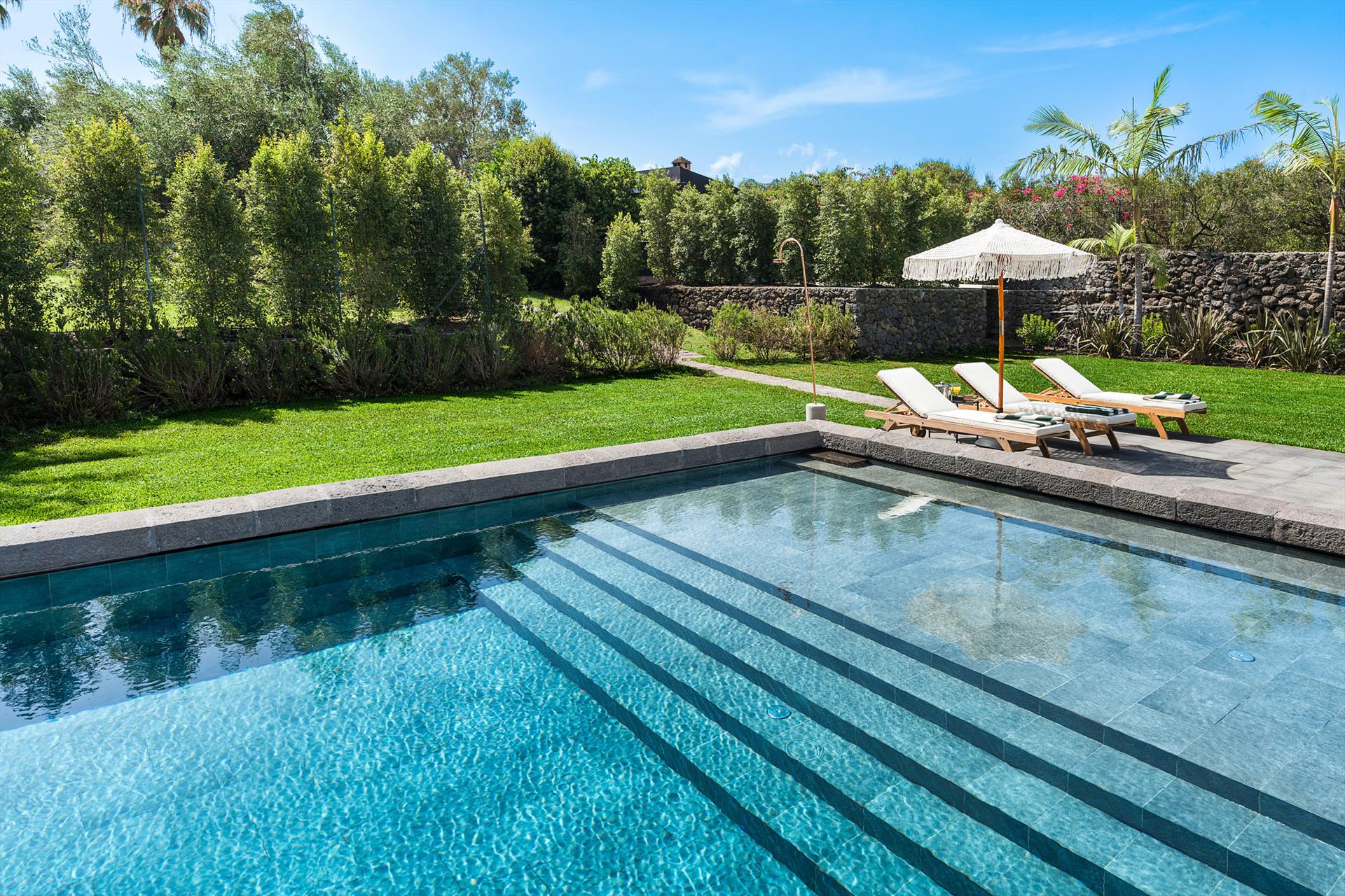 Villa Rosa Nero ist eine elegante und komfortable Villa mit Swimmingpool in Pozzillo, in der Nähe von Acireale, in herrlicher Lage direkt am Meer. Die Villa, die über einen schönen Swimmingpool mit Sonnenterrasse verfügt, ist von einem gepflegten mediterranen Garten und großen möblierten Terrassen umgeben, die an das Meer grenzen. Die exklusiven und gemütlichen Innenräume verteilen sich auf zwei Etagen und umfassen: im Erdgeschoss ein großes Wohnzimmer (TV), eine moderne und gut ausgestattete Küche, ein Esszimmer, ein Badezimmer, eine Waschküche und ein Doppelzimmer mit eigenem Bad/Dusche; im ersten Stock vervollständigen drei weitere Doppelzimmer, alle mit eigenem Bad/Dusche, den Schlafbereich. Die Residenz ist auch mit den besten Annehmlichkeiten ausgestattet, wie Klimaanlage (in allen Zimmern), Wi-Fi, 2 Smart-TVs, Waschmaschine, Trockner, Geschirrspüler, Elektroherd und Mikrowelle, Espresso- und amerikanische Kaffeemaschinen, Weinkeller, Eismaschine und Privatparkplatz. Die Villa Rosa Nero eignet sich perfekt für Familien und Gruppen von Freunden und ist ein idealer Ausgangspunkt, um die Wunder des östlichen Siziliens zu erkunden, darunter Taormina, den Ätna-Park, Acireale, Aci Trezza, Aci Castello und Catania.