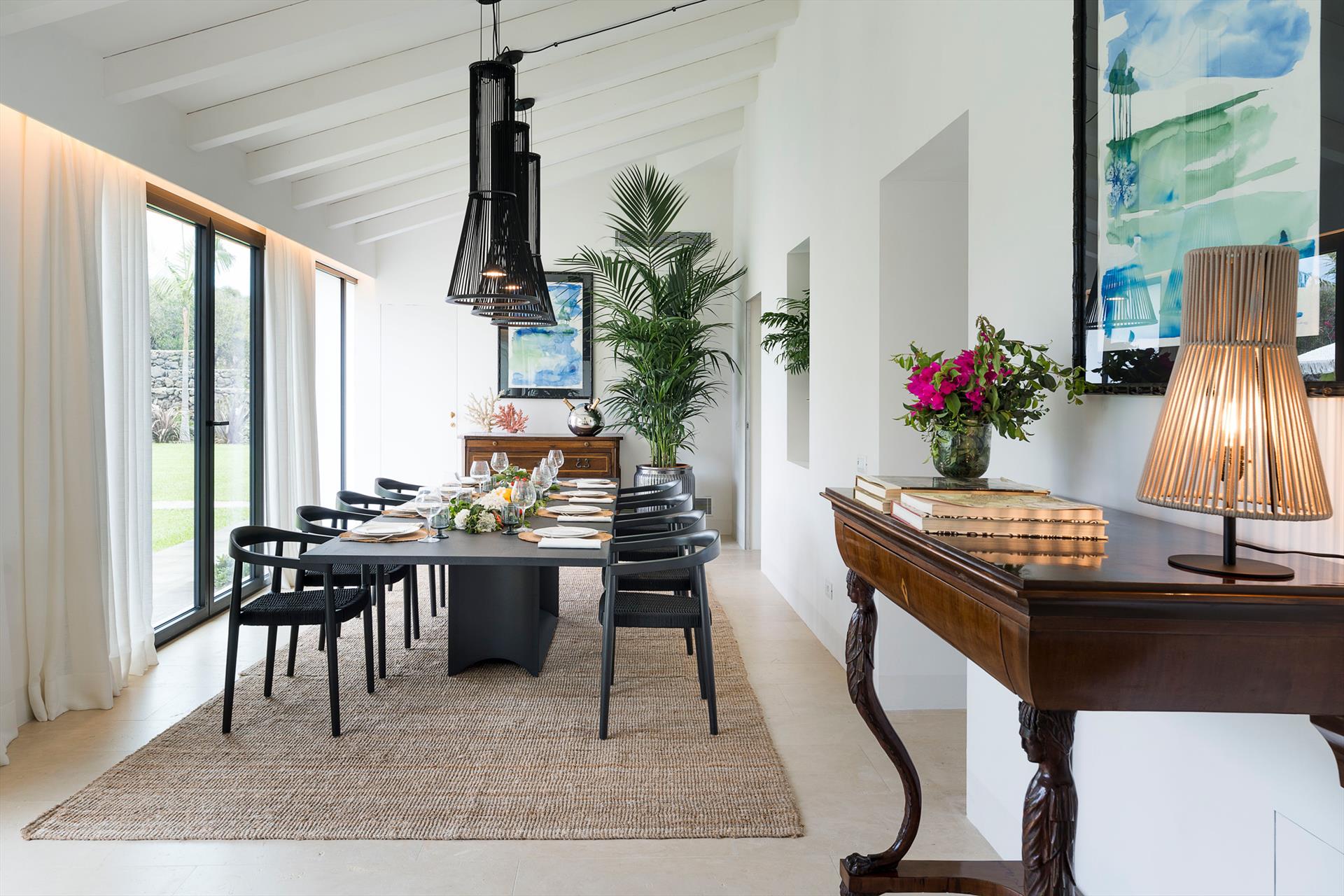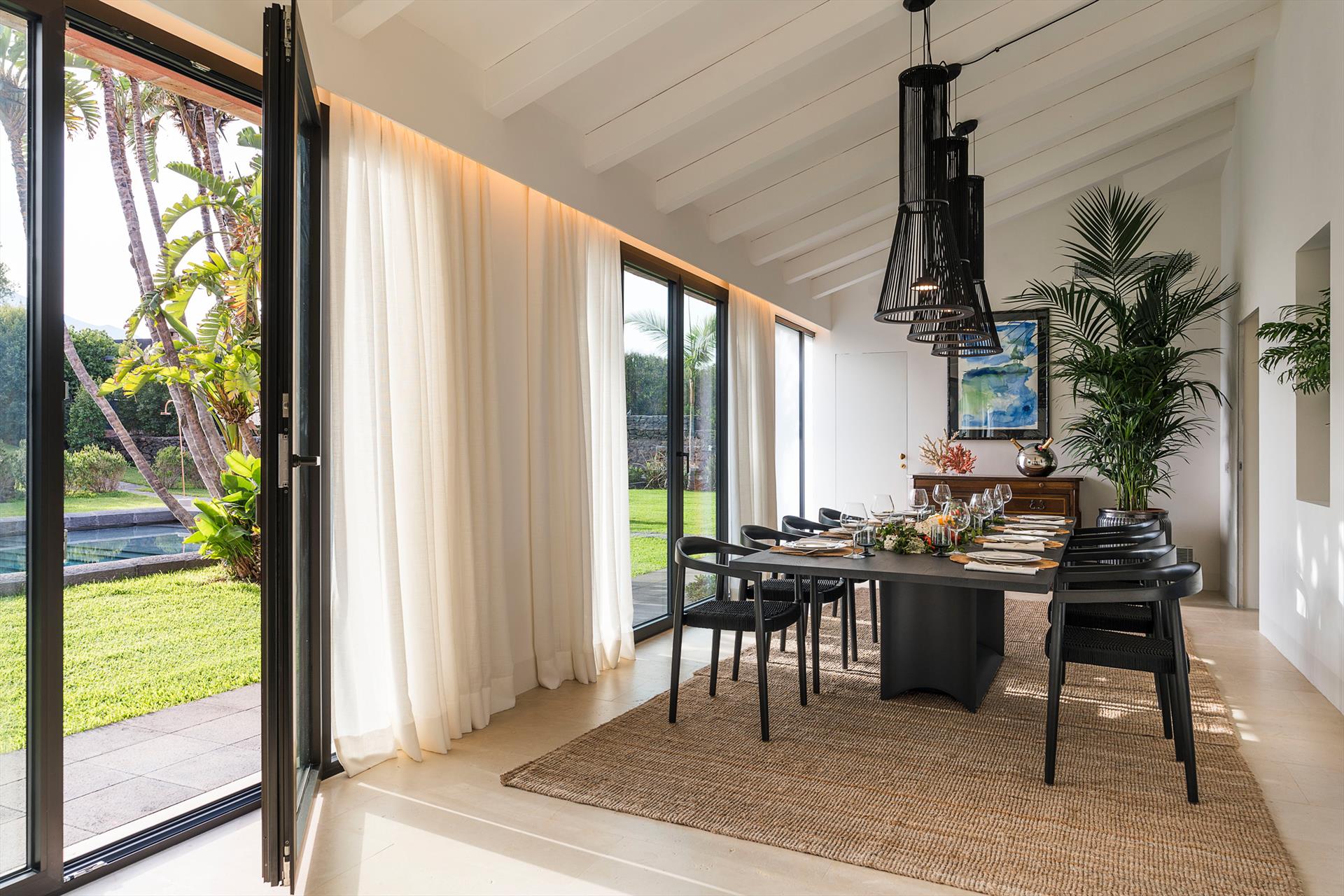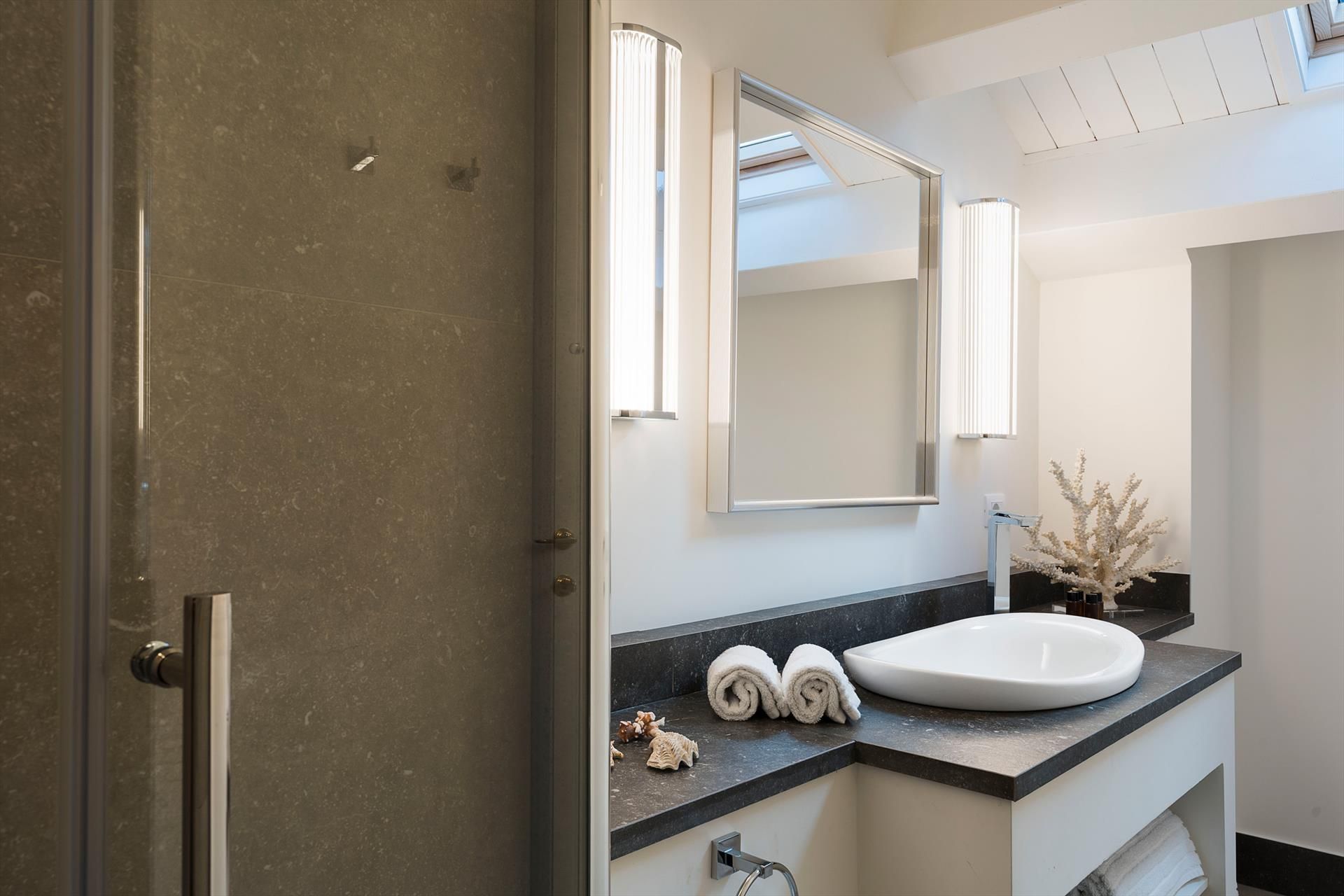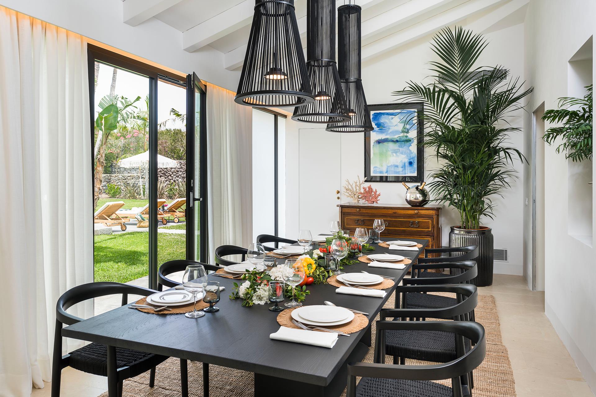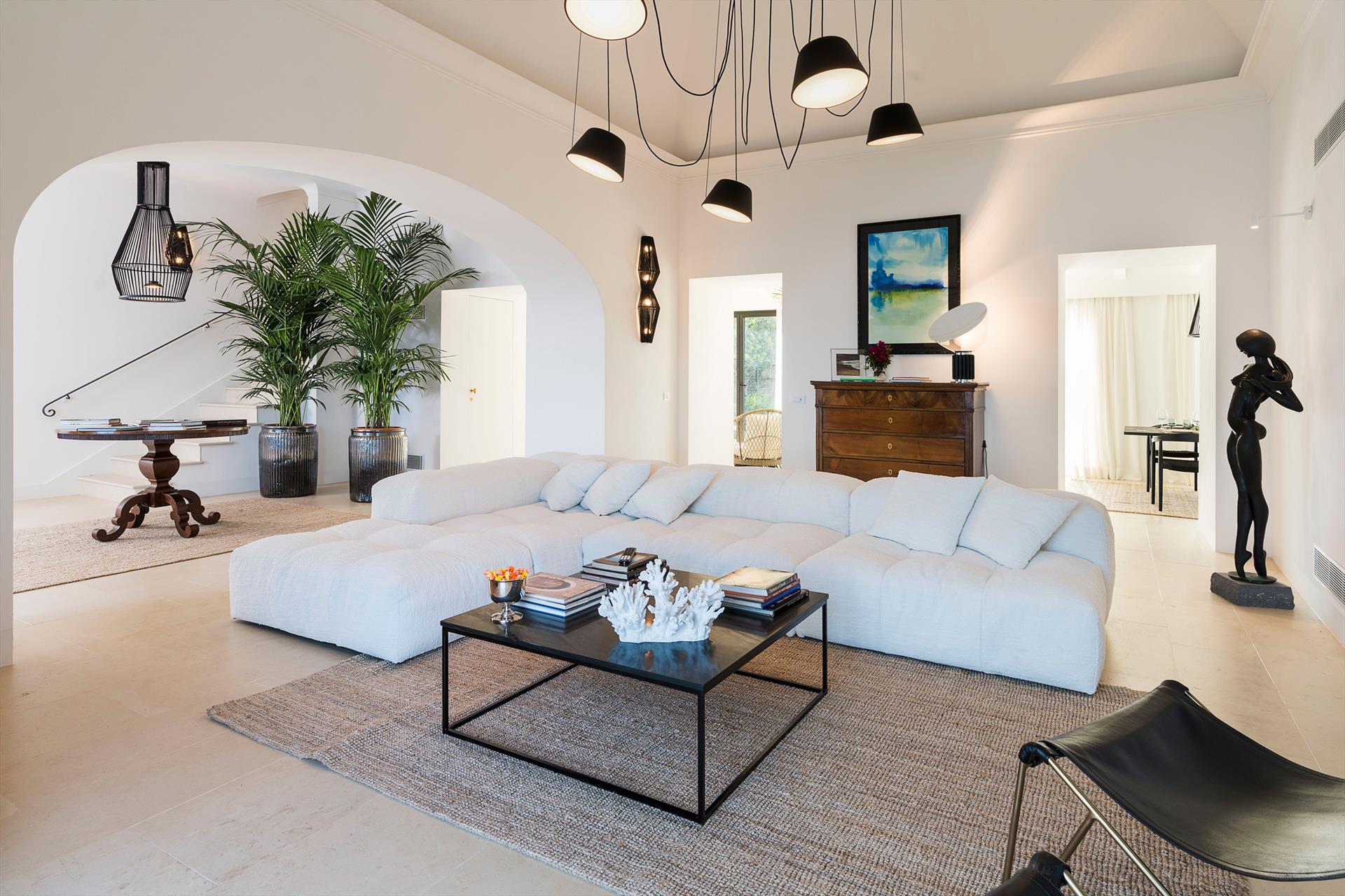 - Innenausstattung: Kaffeemaschine, Geschirrspüler, 4 elektrische Mückenschutzmittel, Elektroherd, Gefrierschrank, Kühlschrank, 4 Haartrockner, Hochstuhl, 4 Induktionskochfelder, Eismaschine, Bügeleisen, Wasserkocher, Mikrowelle, Mixer, Nespresso-Maschine, Safe, Toaster, Wäschetrockner, 2 Fernseher, Waschmaschine.