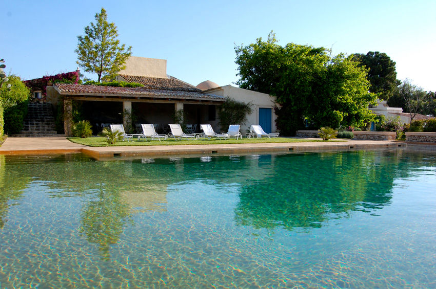 Gegenüber dem Haupteingang befindet sich ein englischer Garten mit zwei weiteren Schlafzimmern, jedes wieder mit eigenem Badezimmer, ein schöner Pool (20 x 9 m) mit Sonnendeck, ausgestattet mit Liegestühlen. Des weiteren finden sich ein Wellness Bereich mit türkischem Bad und Sauna und eine Sommerküche mit Grill und Aussenterrasse. Die 12 Schlafzimmer teilen sich in 2 Juniorsuiten, 6 Superior Zimmer und 4 Standard-Zimmer auf.