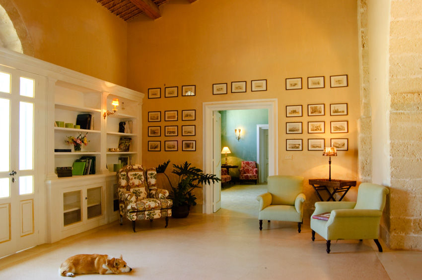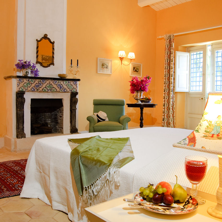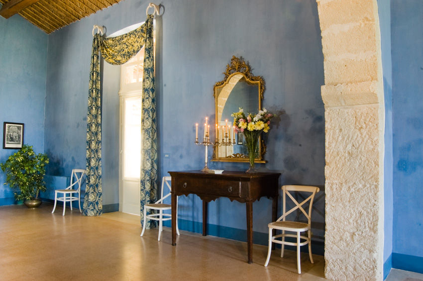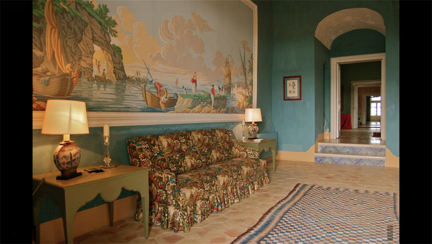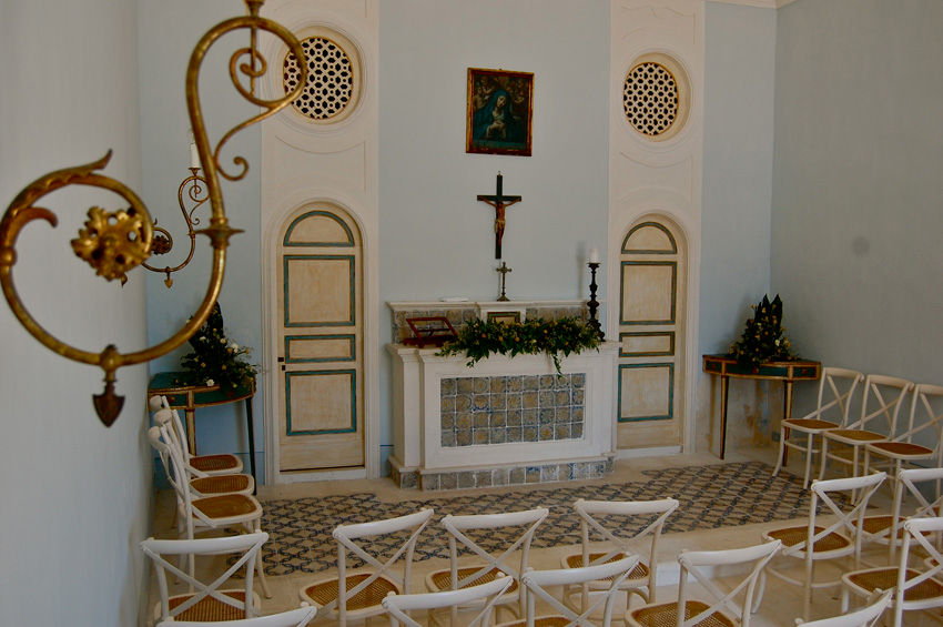 Gleich neben der Kapelle aus dem 17. Jahrhundert führt eine breite Tür in die Eingangshalle, von der Sie in die verschiedenen Wohnbereiche, durch antike Torbögen getrennt, gelangen. Gleich dahinter befindet sich der geräumigen Salon mit beeindruckendem Kamin und einer umfassenden Bibliothek. Von der Sitzecke des Salons führen antike Torbögen in den Speisesaal und weiter zur professionell ausgestatteten Küche und einem schattigen Laubengang mit Glastüren, die auf einen äusserst gepflegten Italienischen Garten, mit einer grossen Pflanzenvielfalt, verschiedenen Brunnen und einem indische Pavillon führen.