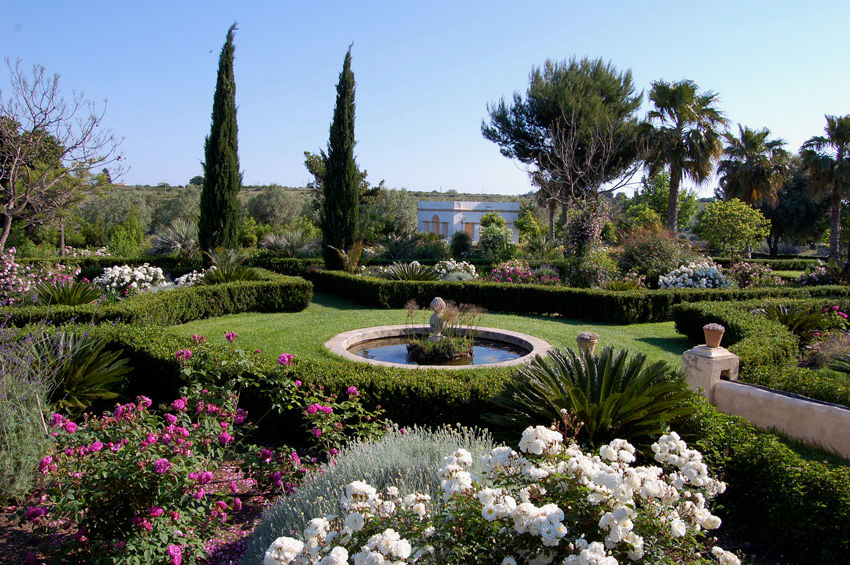 Das 110 Hektar grosse Grundstück des Anwesens, ist von einem mediterranen Garten mit altem Baumbestand umgeben. Schattige Bereiche, verwunschene Ecken und wundervolle Aussichtspunkte bieten dem Besucher eine Oase der Ruhe und Entspannung.