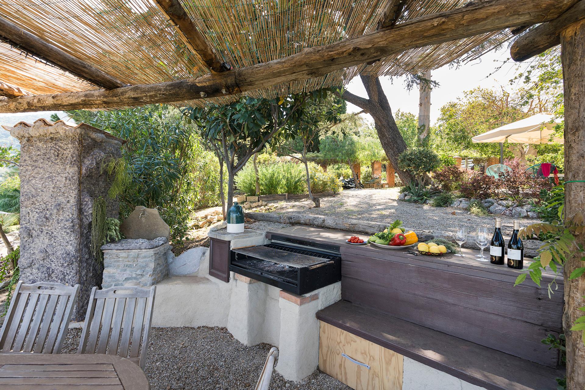 Villa Marchese: Eine raffinierte Residenz in Panoramalage. Die Villa Marchese ist eine elegante Residenz mit Pool, die sich in herrlicher Panoramalage auf den Hügeln bei Capo d'Orlando befindet. Das Anwesen erstreckt sich über ein weitläufiges Gelände mit einem prächtigen Park und uralten Bäumen. Zur Villa gehören ein schöner Pool mit Sonnenterrasse, ein Jacuzzi und großzügige Terrassen mit Blick auf die umliegende Landschaft. Von hier aus reicht die Aussicht über die tyrrhenische Küste und das Meer bis zu den Äolischen Inseln.