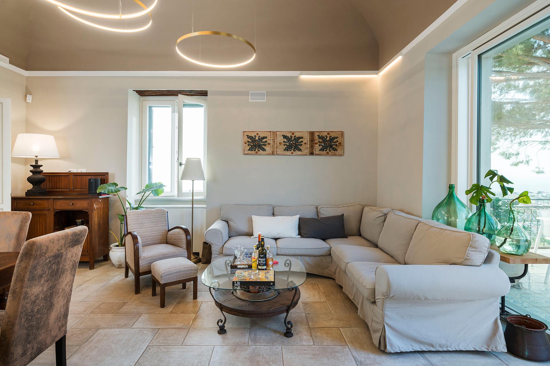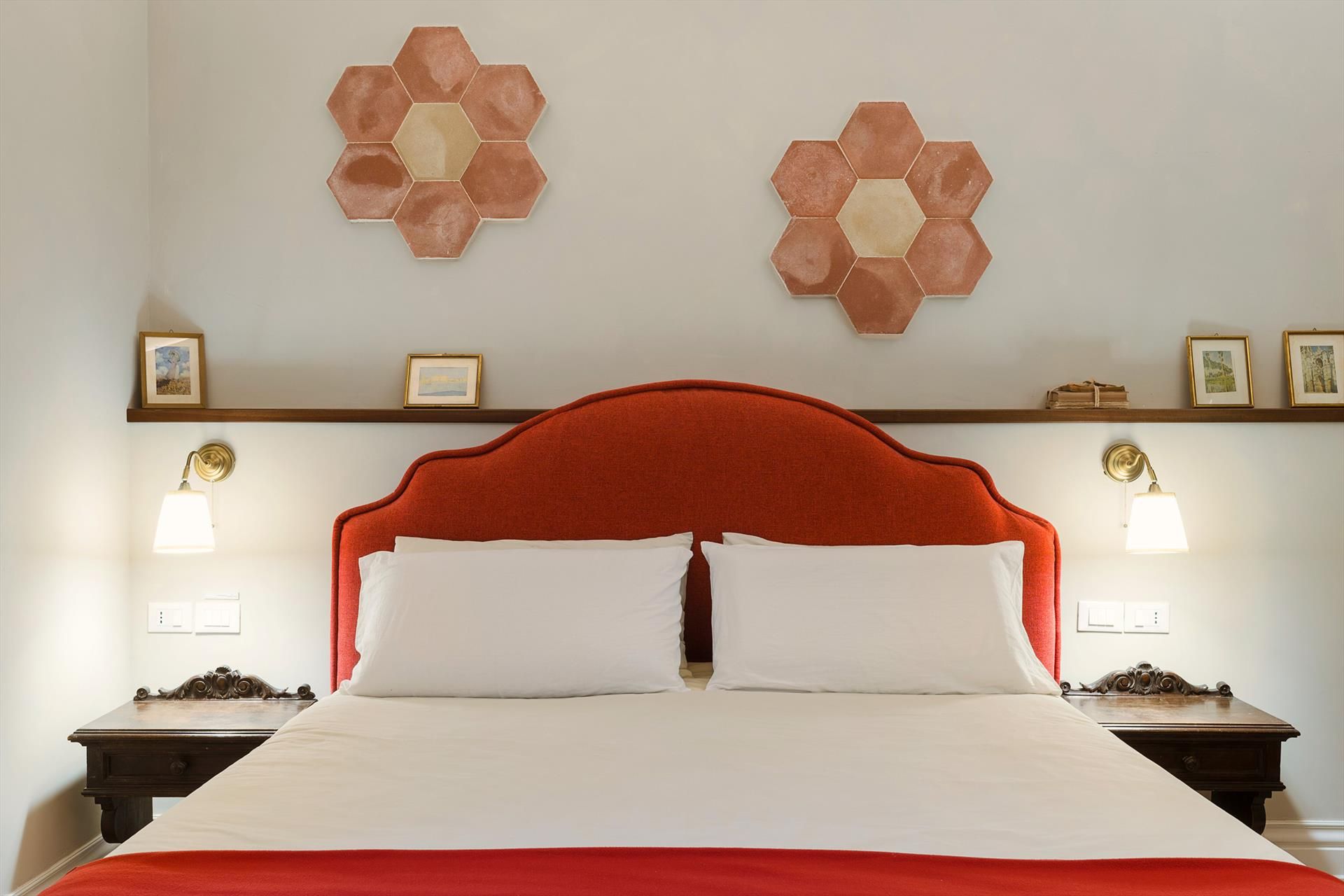 Die jüngste, sorgfältige Renovierung der Immobilie respektiert die ursprünglichen architektonischen Merkmale und verbindet antike Schönheit harmonisch mit moderner Schlichtheit. Die komfortablen Innenräume verteilen sich auf zwei Ebenen und verfügen über fünf Doppelzimmer, jedes mit eigenem Bad, TV und Minibar. Außerdem gibt es ein Wohnzimmer, ein Arbeitszimmer, einen Frühstücksraum, ein Esszimmer, zwei Küchen und eine Waschküche.