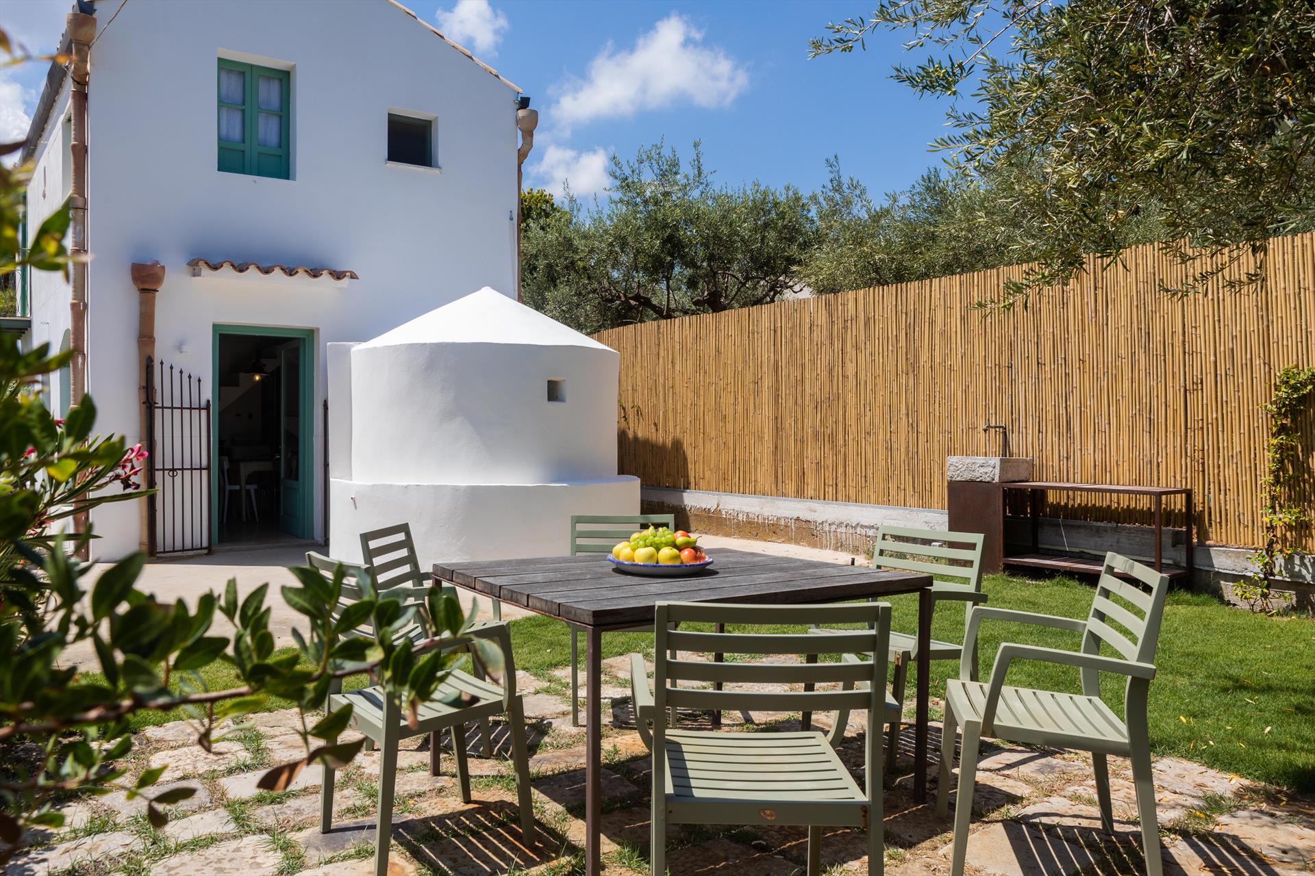 Casa Zammù ist ein typisch sizilianisches, restauriertes Landhaus, das im Schatten von Olivenbäumen liegt. Ein Ferienhaus mit Liebe zum Detail, wo Sie die Luft vergangener Zeiten einatmen können: den einfachen Charme und Komfort eines rustikalen traditionellen sizilianischen Hauses. Das Haus verfügt über einen privaten Swimmingpool (8 x 3 m). Die Villa erstreckt sich über 2 Etagen und kann 4 Personen beherbergen (oder maximal 6, wenn man ein Bett im Zusatzzimmer des Hauptschlafzimmers und ein Bett im Wohnbereich hinzufügt). Die Schönheit des freigelegten Mauerwerks, die Verwendung lokaler Materialien und die sorgfältige Restaurierung von Gegenständen aus der Zeit machen diese Villa zu einem bezaubernden Ort.