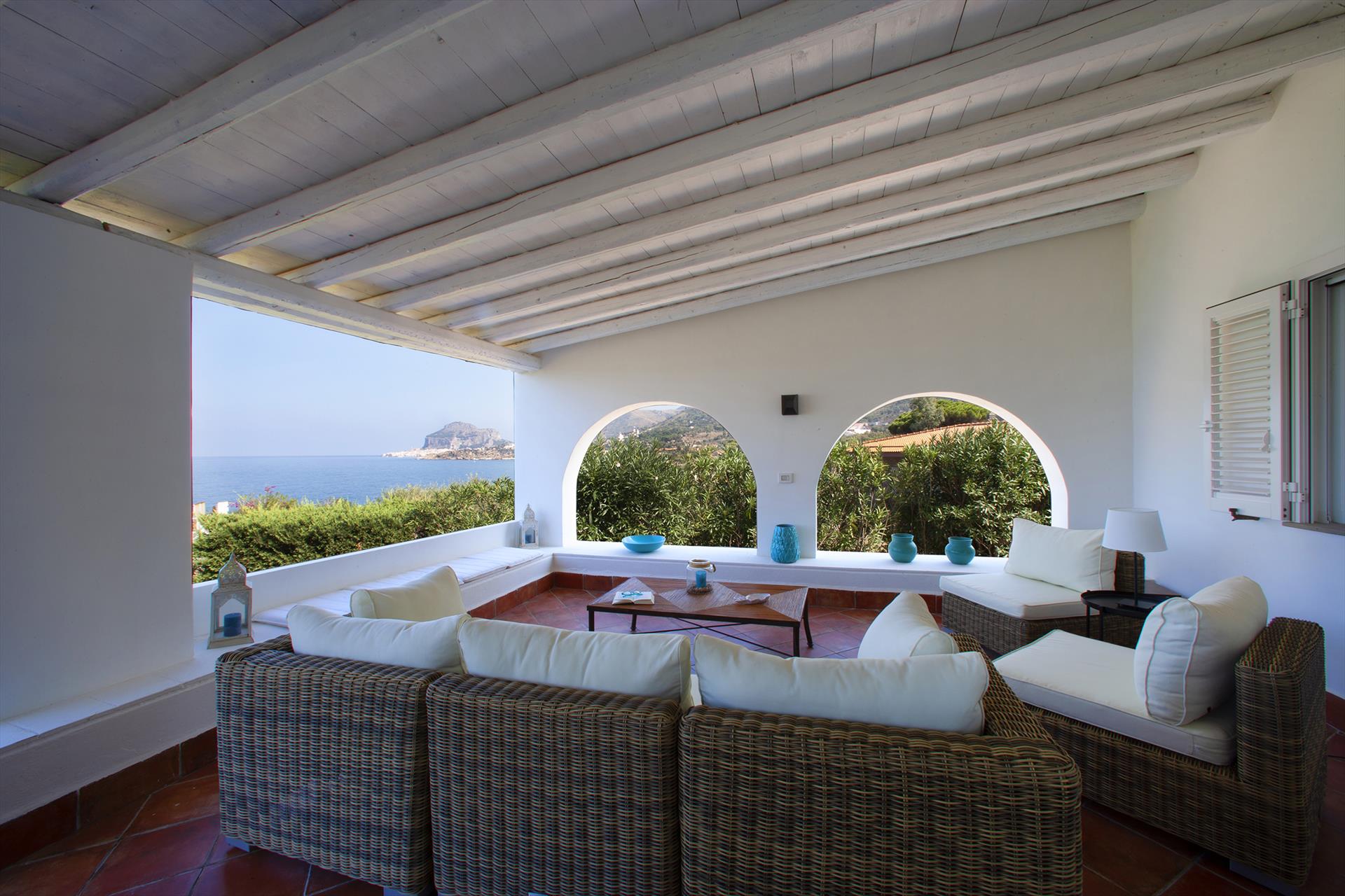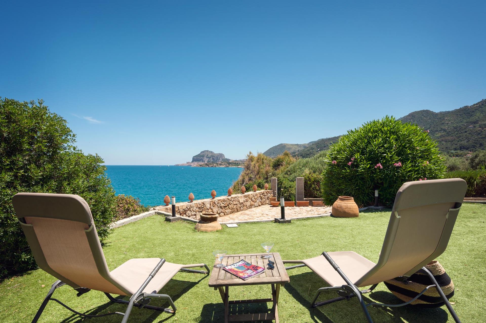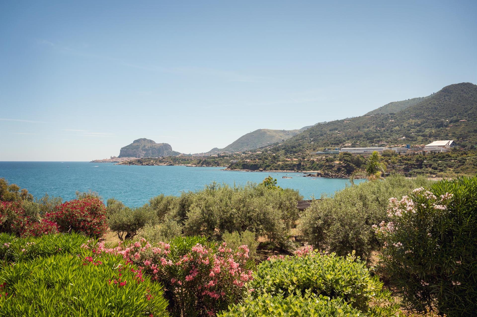 Sowohl von der Terrasse als auch von der Villa aus können Sie den Blick über das Meer und die malerische Küste, sowie auf die 'Skyeline' von Cefalu mit dem Rocca-Felsen und den Zwillingstürmen des normannischen Doms geniessen.