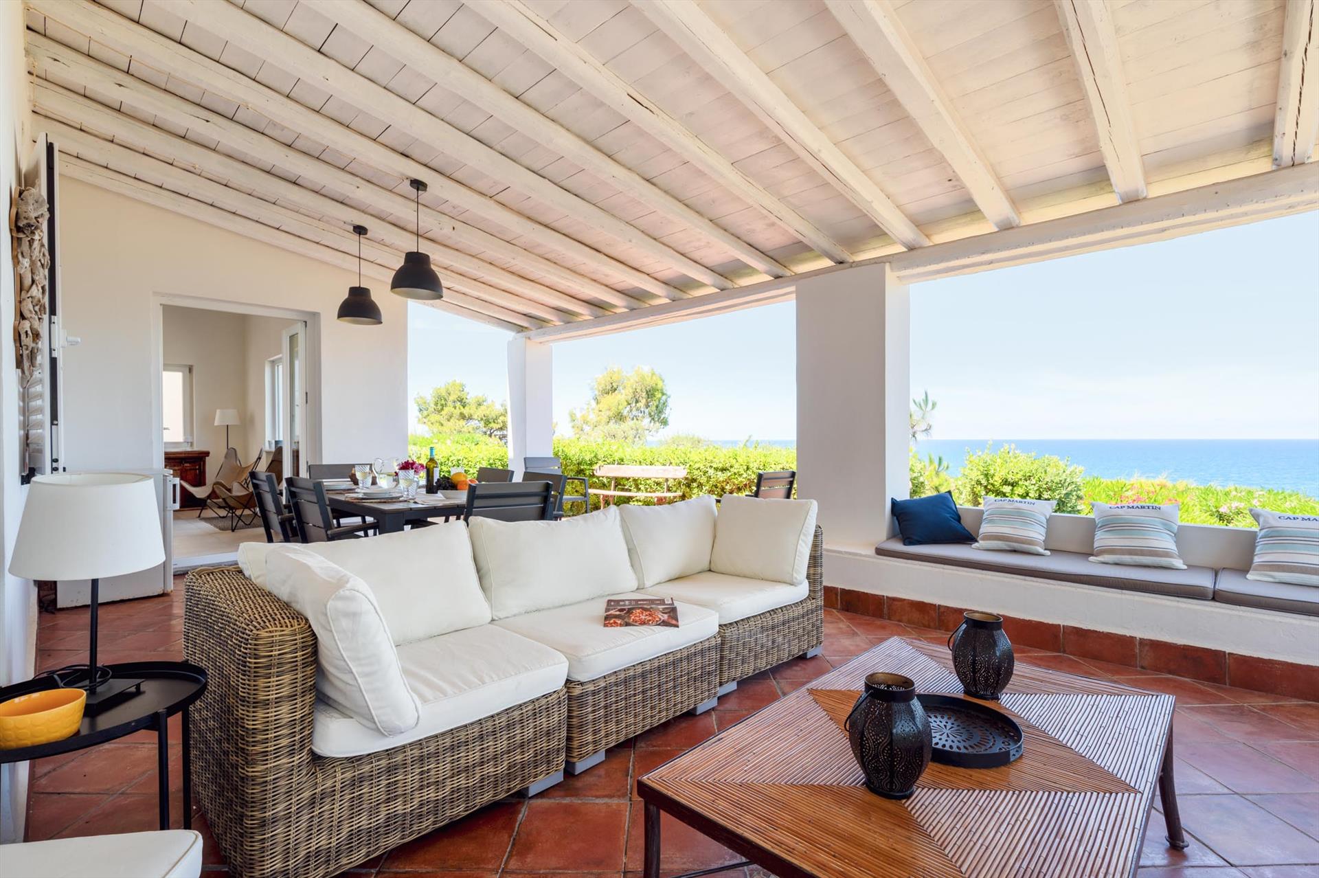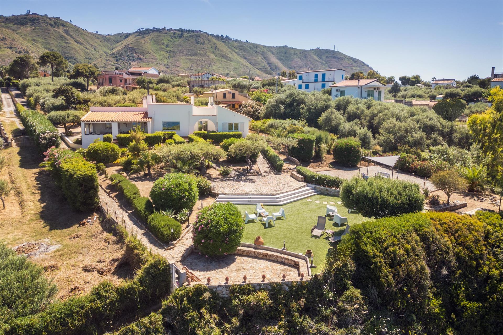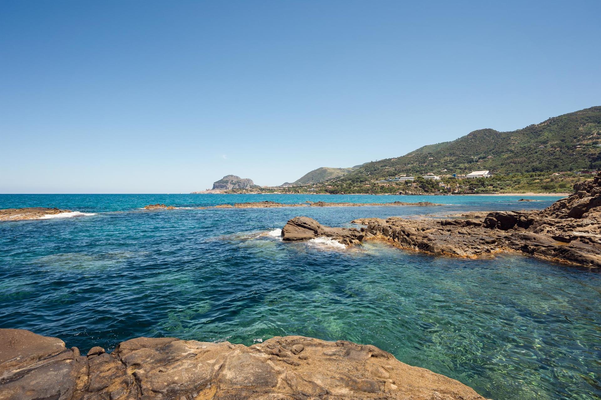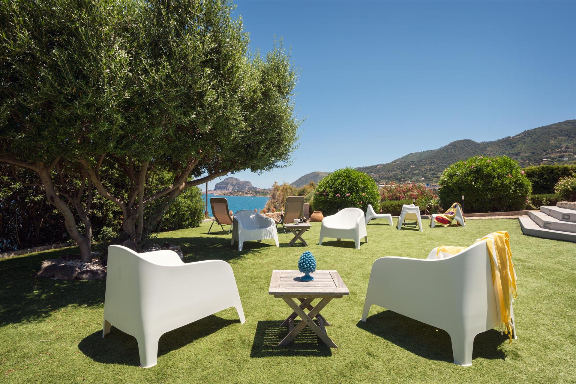 Sowohl von der Terrasse als auch von der Villa aus können Sie den Blick über das Meer und die malerische Küste, sowie auf die 'Skyeline' von Cefalu mit dem Rocca-Felsen und den Zwillingstürmen des normannischen Doms geniessen.
