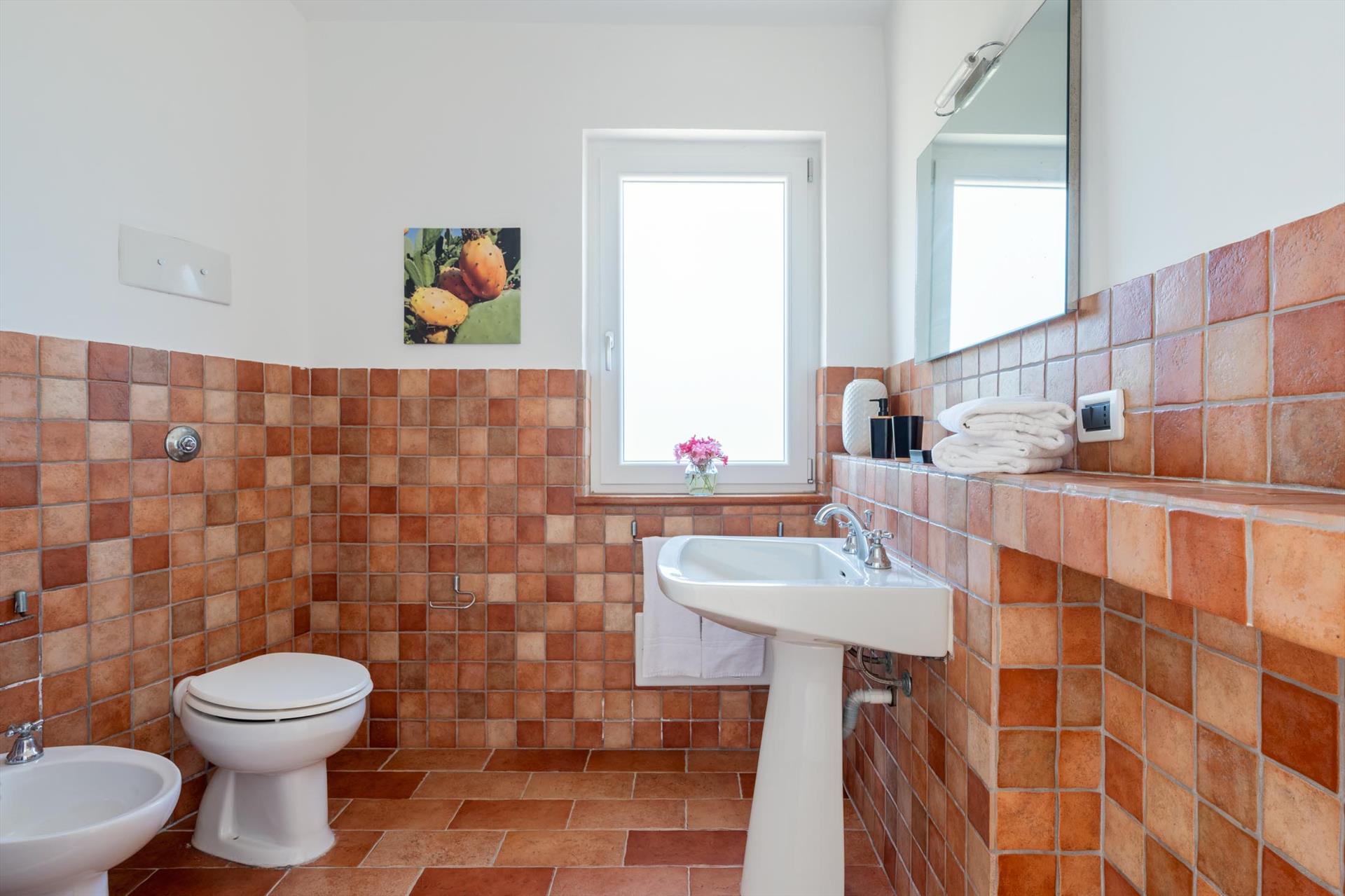 - 2 Badezimmer jedes mit Einzelwaschbecken, Dusche, Bidet, Toilette und Föhn