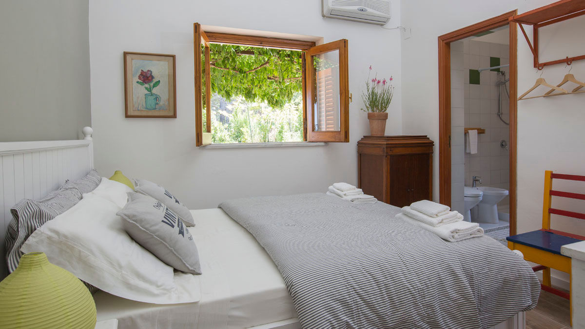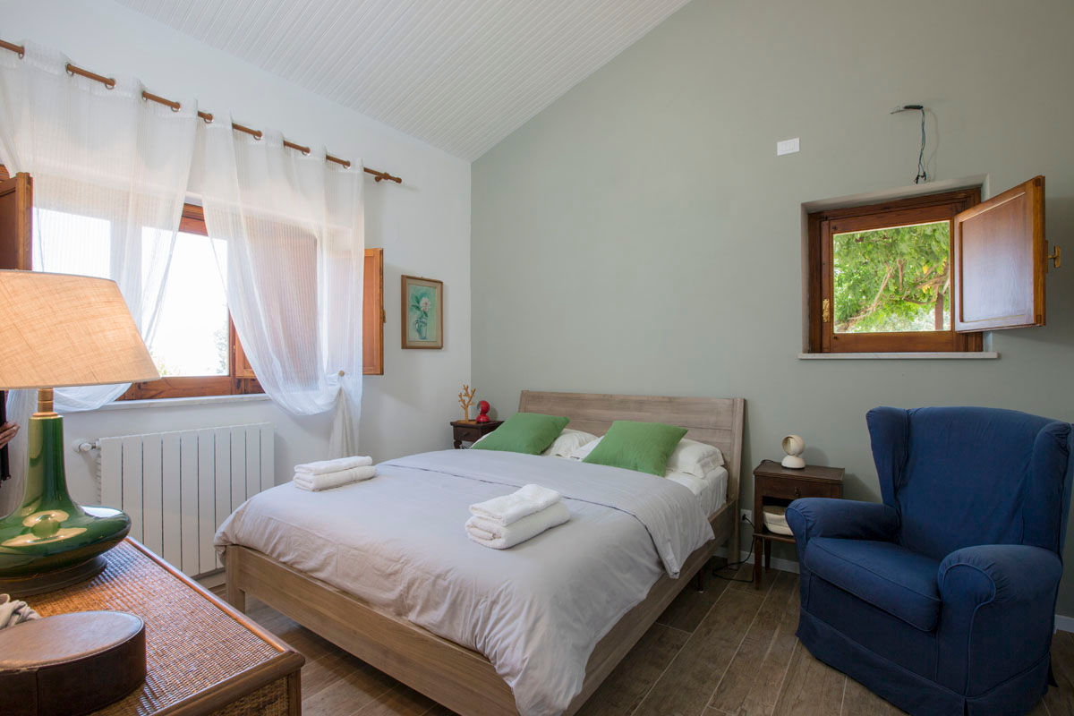 Die Innenräume sind im Stile des klassischen sizilianischen Sommerhauses freundlich und gemütlich ausgestattet. Der Eingang in das Haus erfolgt entweder über das geräumige und gemütliche Wohnzimmer mit schöner, grosser Fensterfront, Essbereich und Kamin oder über den hinteren Eingang über einen kleinen Flur in die mit Majolika-Kacheln gemauerte Küche geräumige und gut ausgestattete Küche. Vom Wohnzimmer aus erstrecken sich zwei Schlafzimmer mit Doppelbetten, eines davon mit Ensuite Badezimmer mit Dusche/WC, ein Kinderzimmer mit Stockbetten sowie ein weiteres Badezimmer. Eine Holztreppe im Wohnzimmer führt in das 4. Schlafzimmer im Obergeschoss,welches mit Doppelbett Ensuite Badezimmer mit Dusche/WC, sowie einem kleinen Balkon auf welchem der Besitzer mit dem, auch für Gäste auf Anfrage verfügbaren Teleskop, die Sterne bewundert, ausgestattet ist. Wifi-Internet bis 500 MB/Tag ist vorhanden.