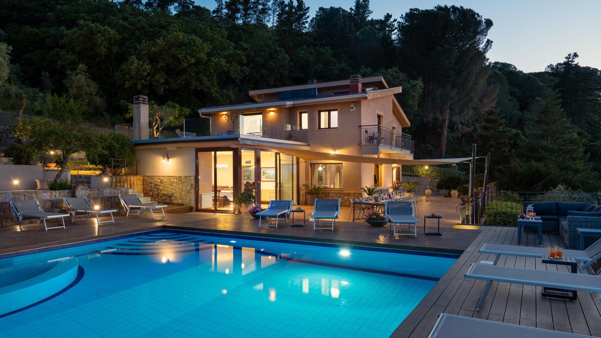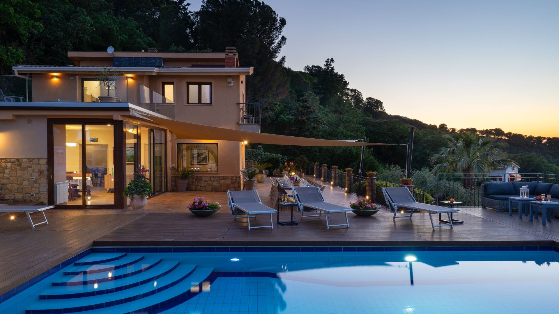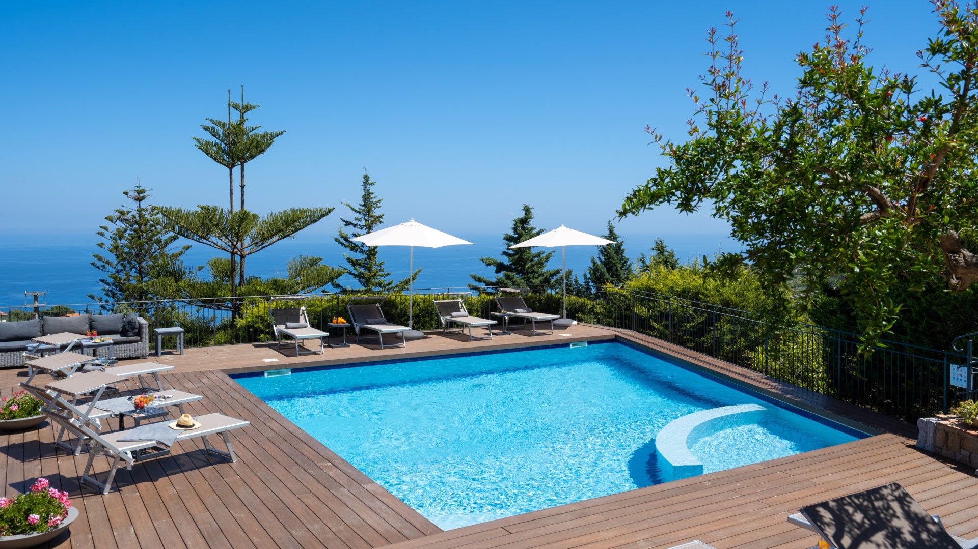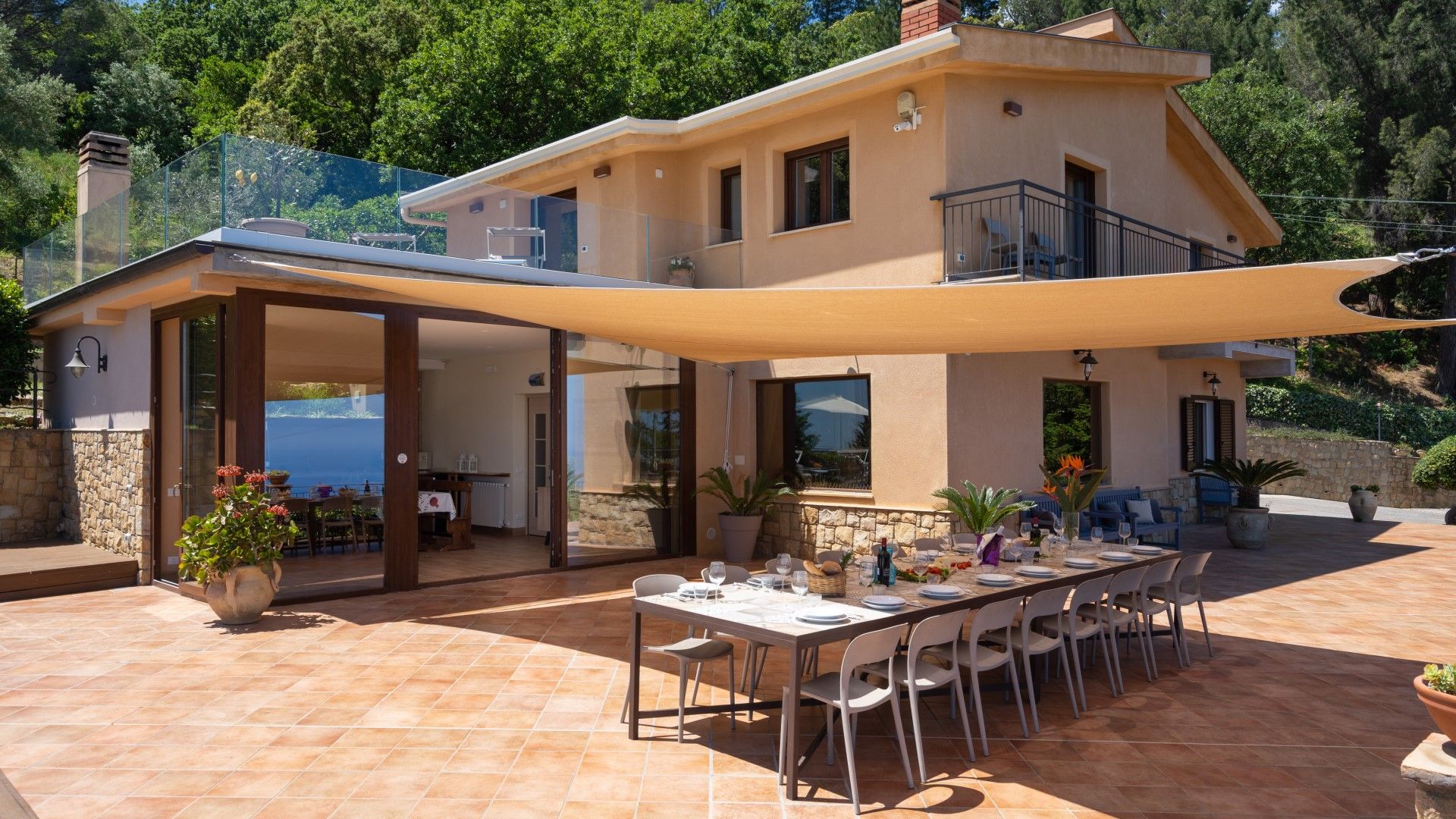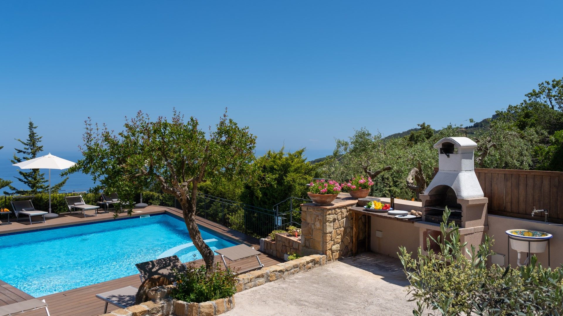 Die Villa Provenza ist von Palmen und Gärten mit Blick auf das Meer umgeben. Sie verfügt über große Terrassen für Mahlzeiten im Freien, einen Spielplatz und einen großen Swimmingpool mit Sonnenterrasse. Es gibt auch eine Tischtennisplatte und einen Grillplatz.