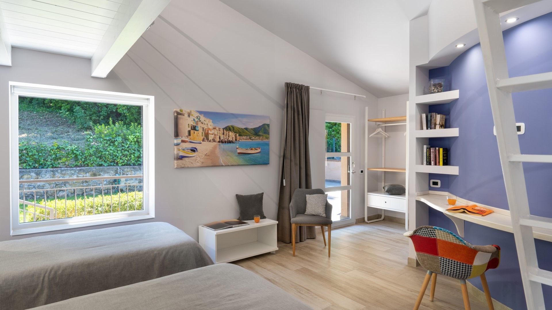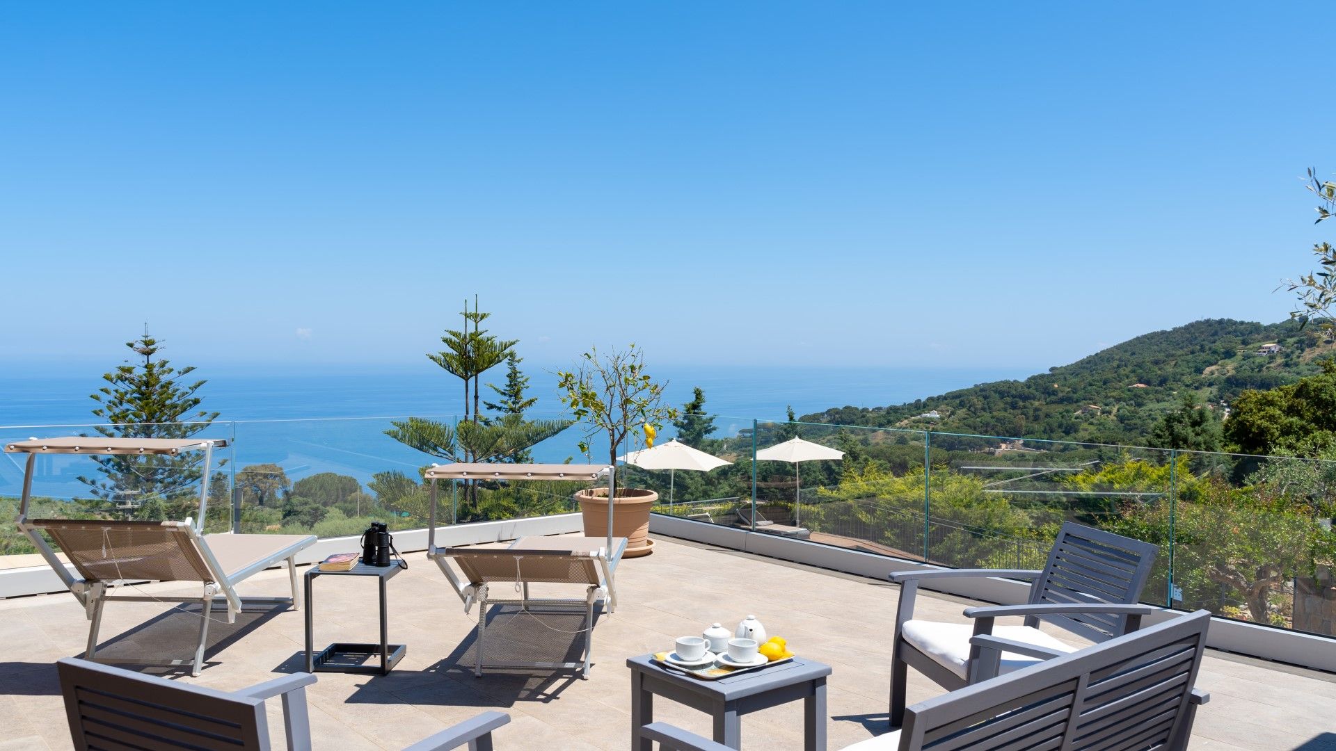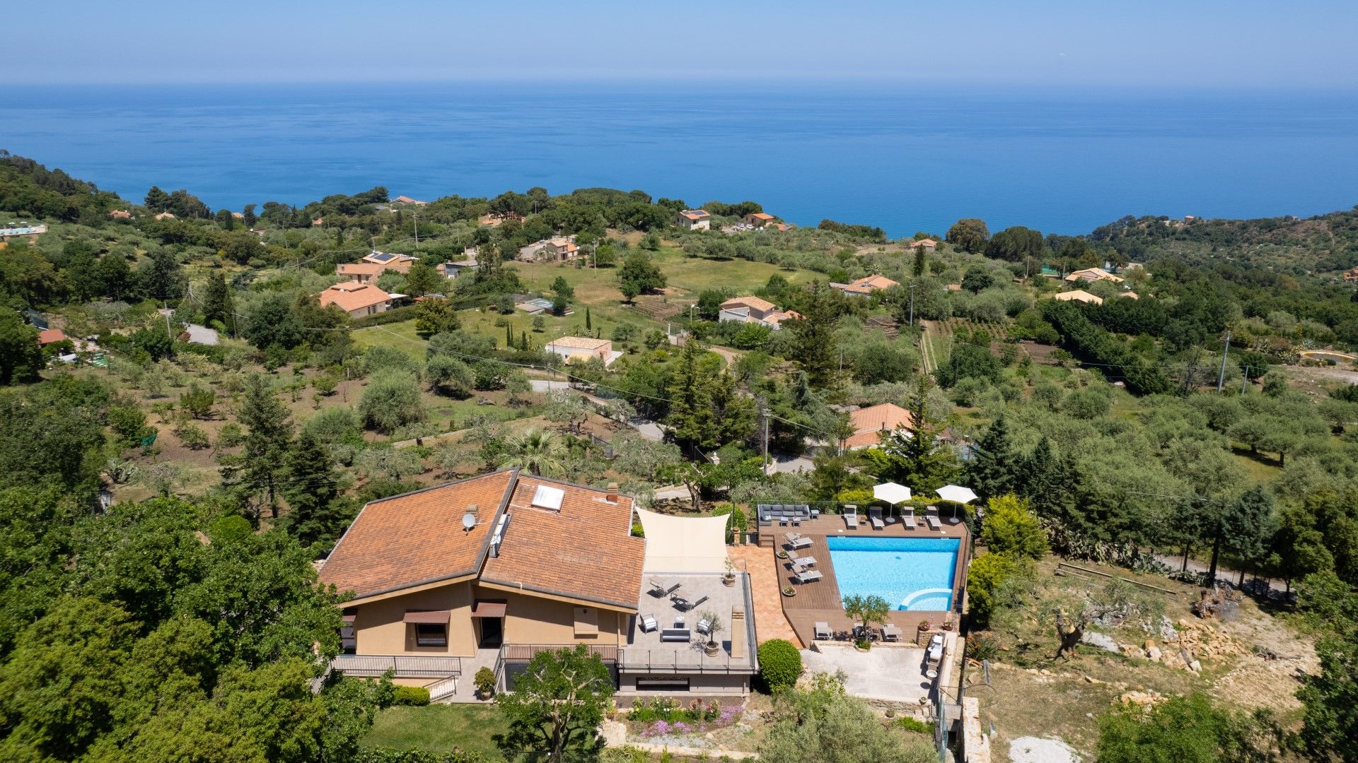 Über eine Außentreppe gelangt man in das kürzlich renovierte Obergeschoss mit seinem geräumigen Wohnbereich, der sich zu einer großen Terrasse mit Panoramablick auf den Pool, Cefalù und das Meer öffnet. Dieser Teil der Villa kann bis zu 10 Personen beherbergen; er verfügt über drei Schlafzimmer mit Doppelbetten, von denen zwei mit zwei weiteren Einzelbetten ausgestattet sind, ideal für Teenager. Jedes dieser Zimmer hat ein eigenes Bad.