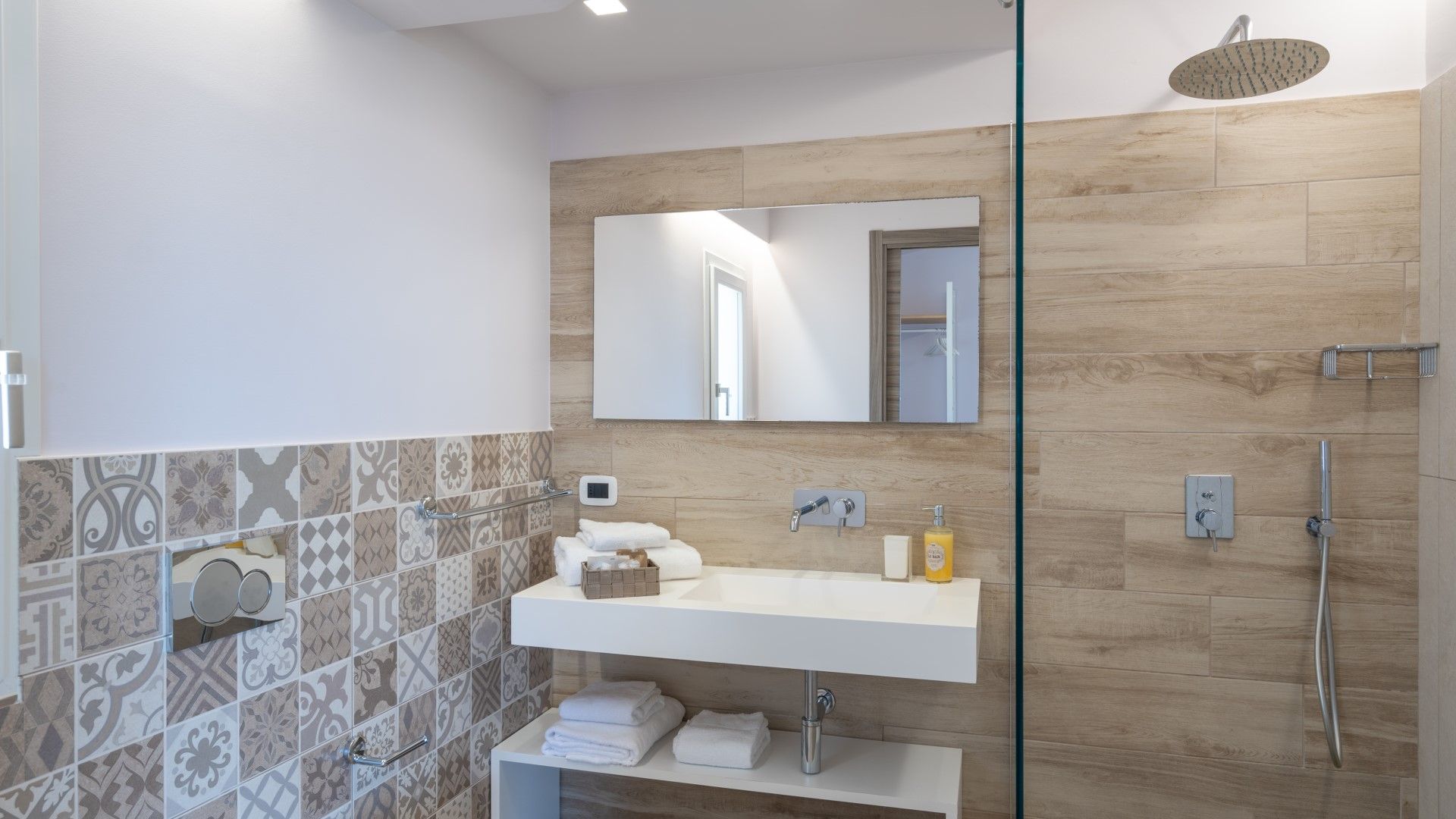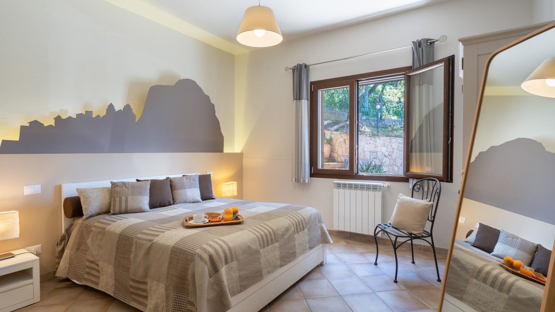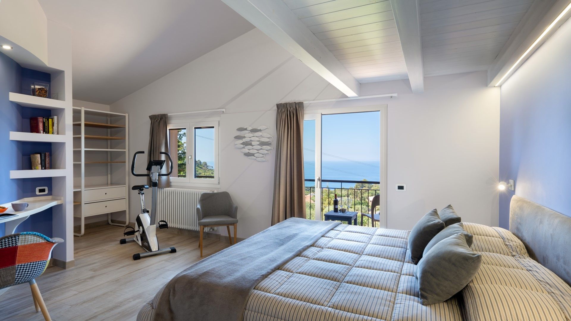 Über eine Außentreppe gelangt man in das kürzlich renovierte Obergeschoss mit seinem geräumigen Wohnbereich, der sich zu einer großen Terrasse mit Panoramablick auf den Pool, Cefalù und das Meer öffnet. Dieser Teil der Villa kann bis zu 10 Personen beherbergen; er verfügt über drei Schlafzimmer mit Doppelbetten, von denen zwei mit zwei weiteren Einzelbetten ausgestattet sind, ideal für Teenager. Jedes dieser Zimmer hat ein eigenes Bad.