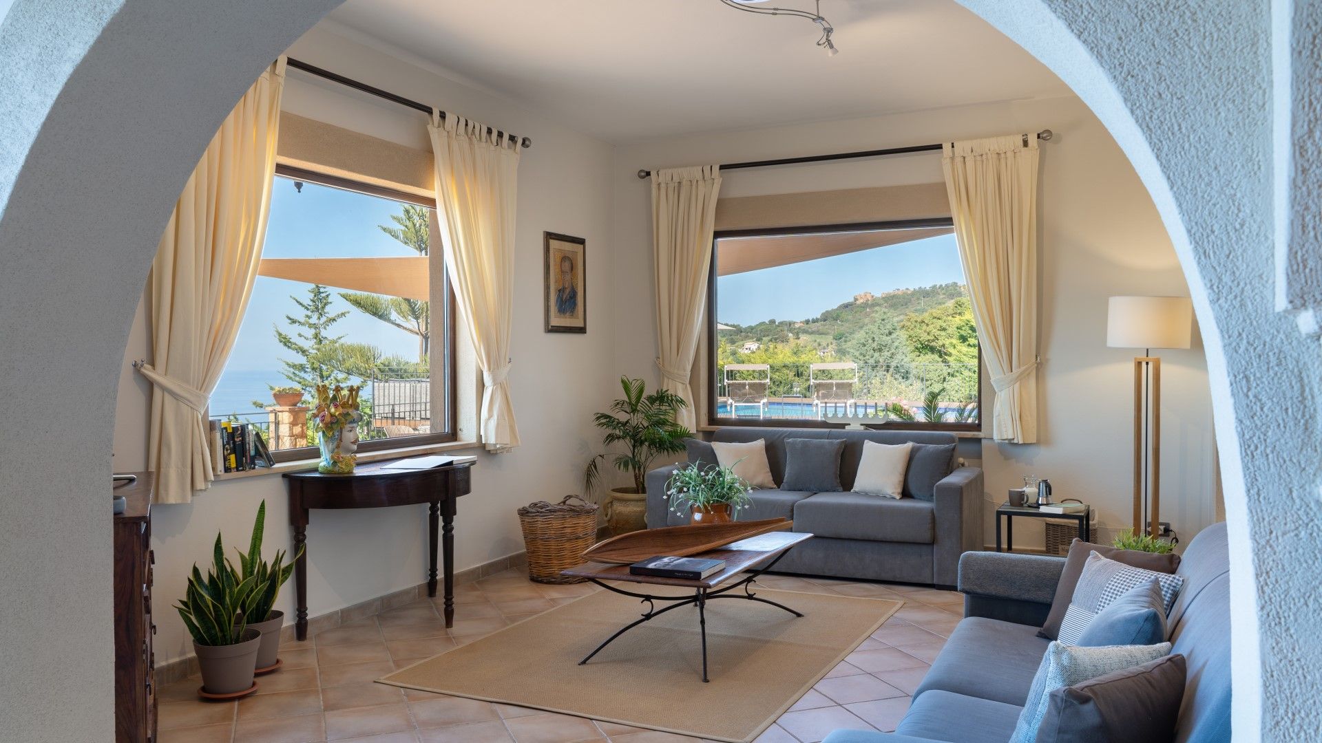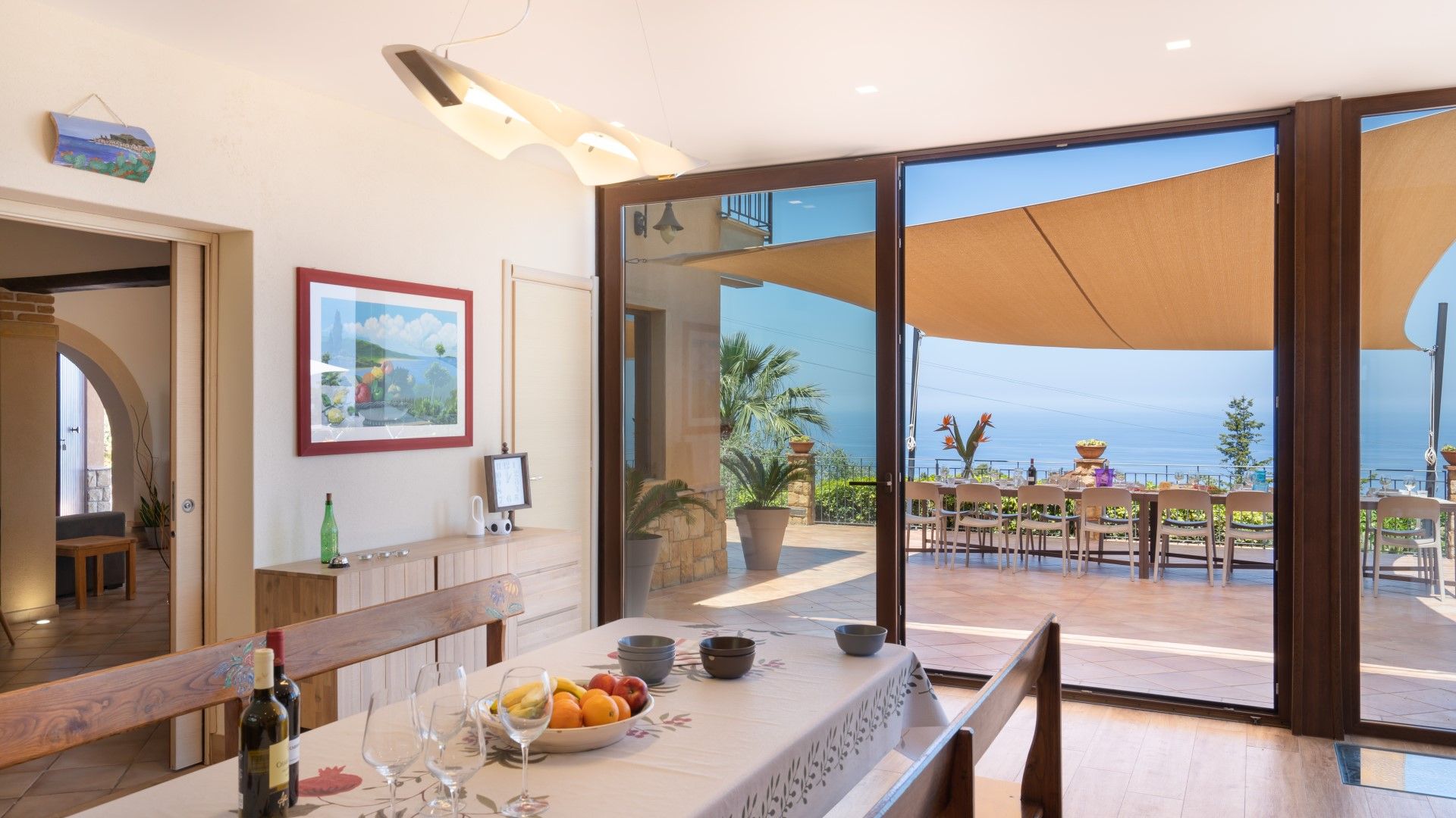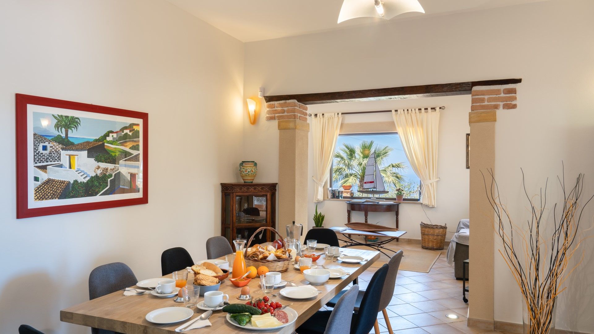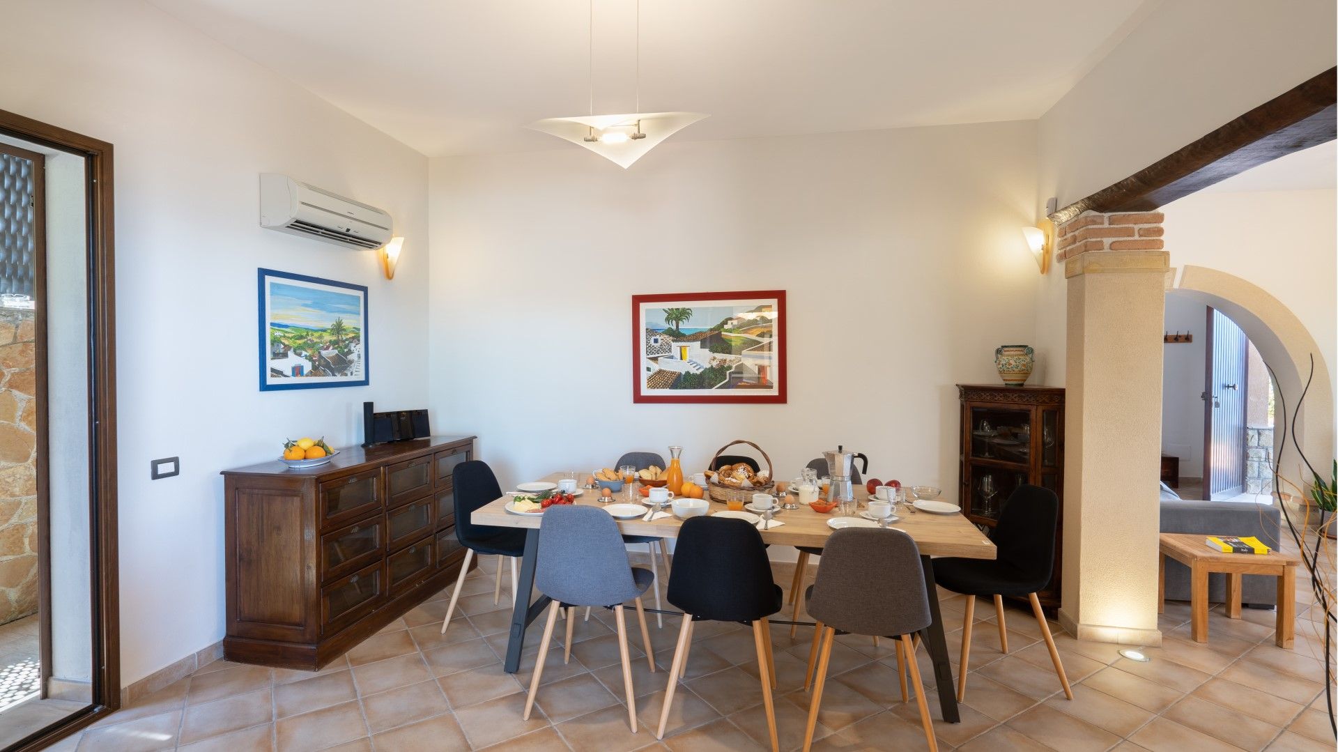 Die Innenräume sind geräumig, mit farbenfrohen Wänden und passenden Möbeln, die einen eindeutig sizilianischen Stil widerspiegeln. Die Villa ist so angelegt, dass auch große Familiengruppen ihren eigenen Raum haben können.