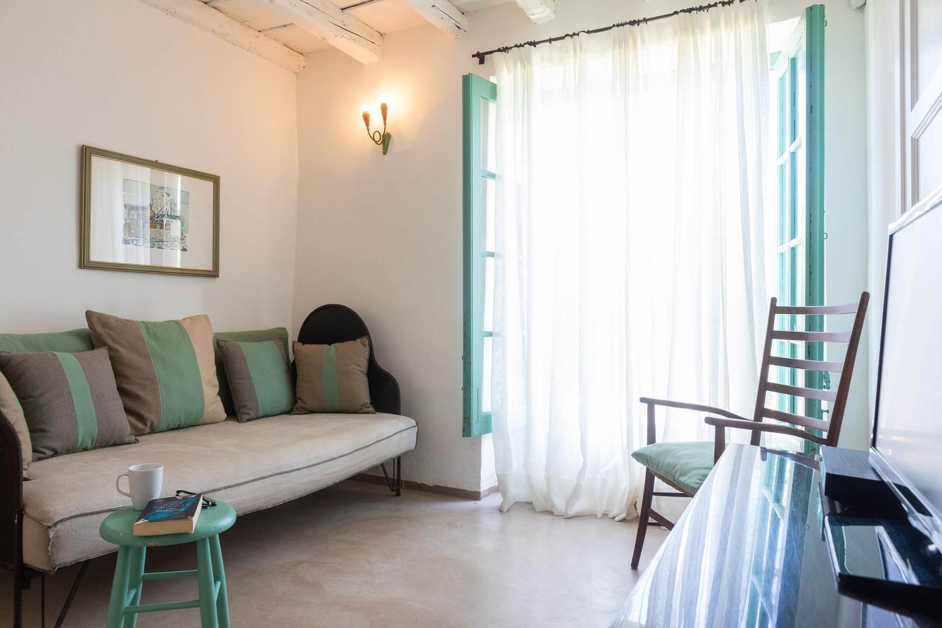 Erdgeschoss: kleine Küche, gemütlicher Wohnbereich, 1 Doppelschlafzimmer (das sich zu einem Sitzbereich im Freien öffnet, so dass Sie das Leben im Freien genießen können) und 1 Badezimmer mit Dusche.