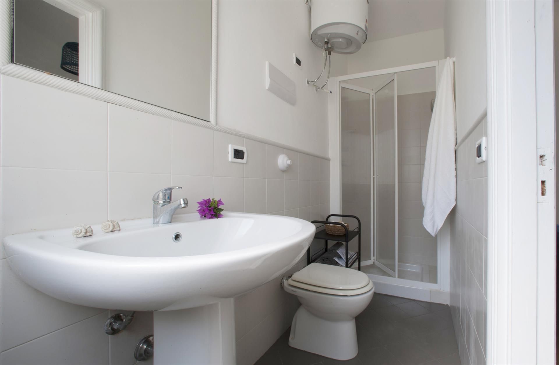 - 2 Badezimmer jedes mit Einzelwaschbecken, Dusche, Bidet, Toilette und Föhn