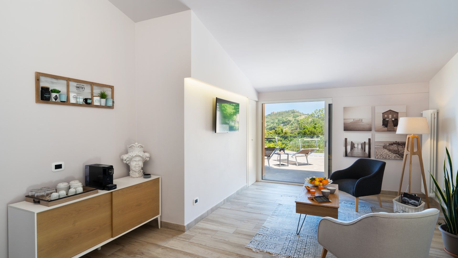 Die Innenräume sind geräumig, mit farbenfrohen Wänden und passenden Möbeln, die einen eindeutig sizilianischen Stil widerspiegeln. Die Villa ist so angelegt, dass auch große Familiengruppen ihren eigenen Raum haben können.