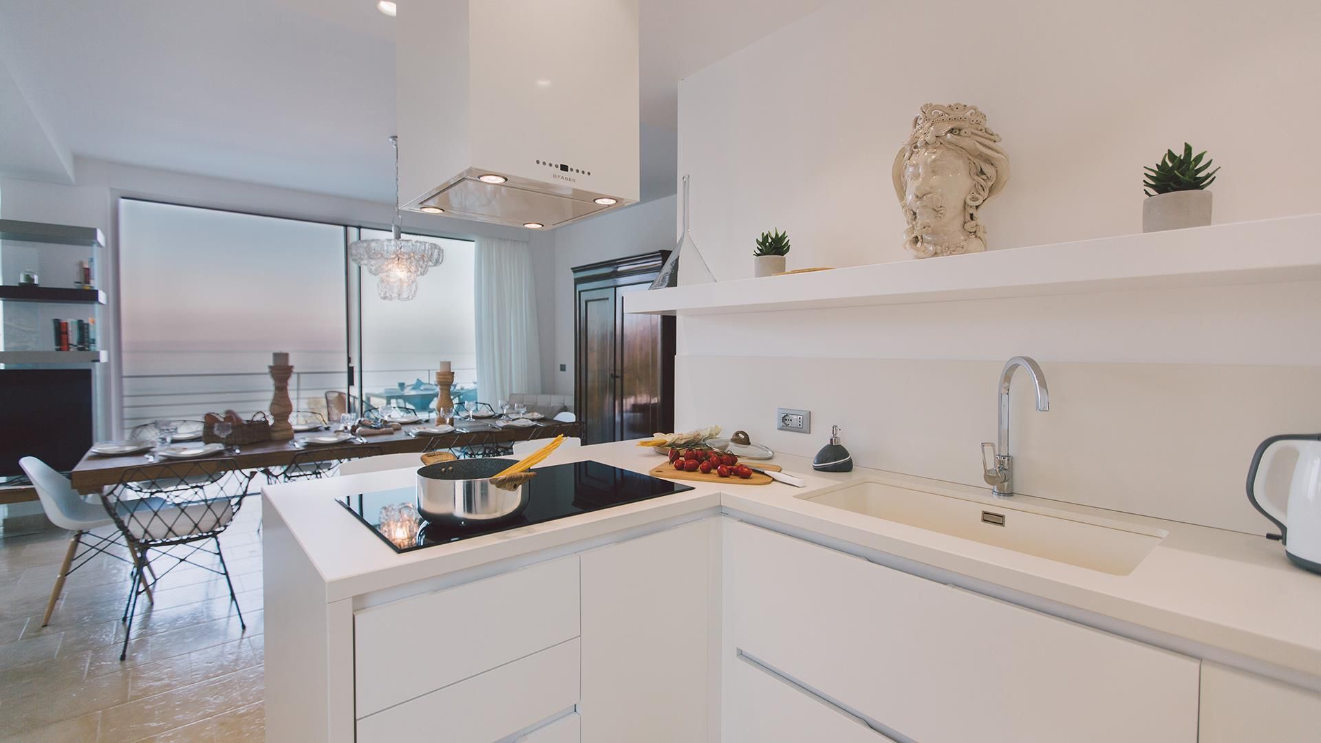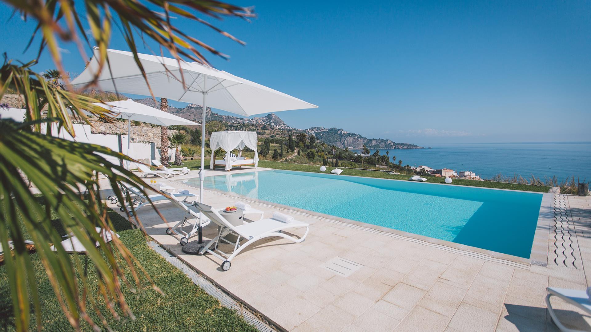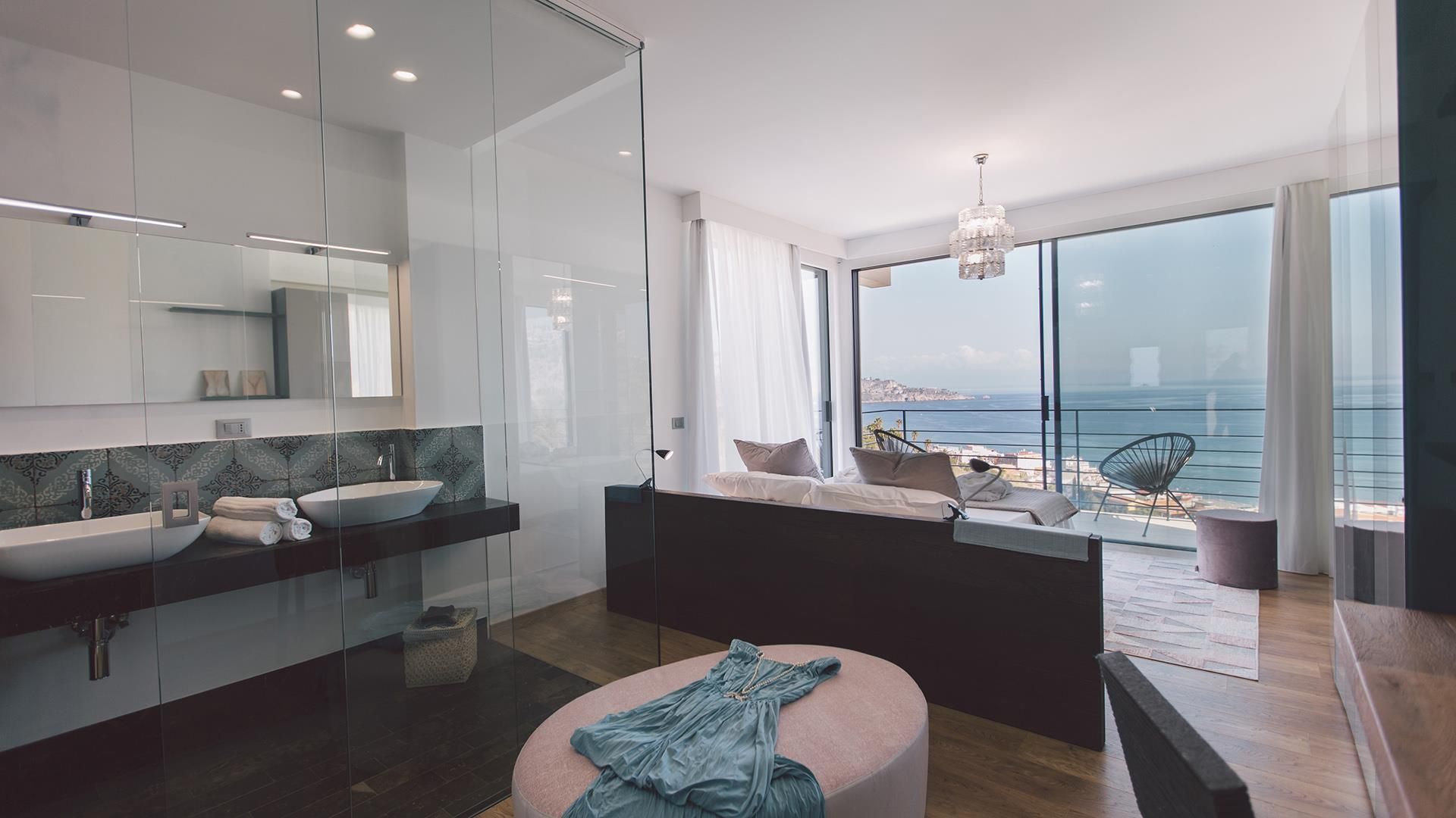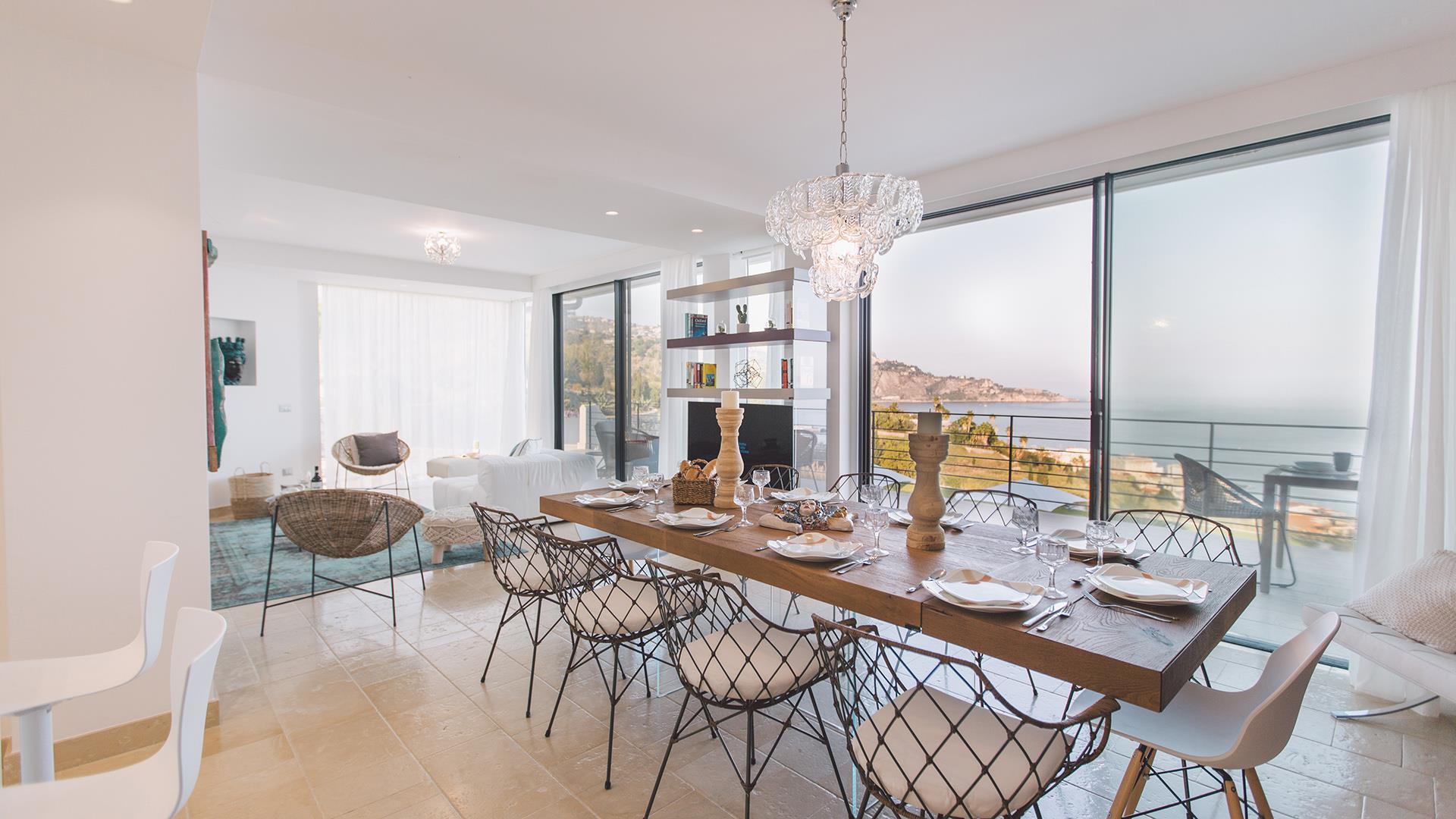 Villa Miranda ist eine schöne und moderne Villa mit pool, die auf einem Hügel mit Panoramablick im berühmten Ferienort Giardini Naxos liegt, von dem aus man einen atemberaubenden Blick auf das Meer, den Ätna und Taormina genießen kann. Die Wohnung bietet gemütliche und moderne Innenräume, die sorgfältig nach einem hohen Standard und mit Farben gestaltet wurden, die ein Gefühl von Entspannung und Komfort vermitteln; außerdem bieten alle Zimmer einen schönen Meerblick. Im Außenbereich verfügt die Villa über geräumige, ausgestattete Terrassen und einen großen Bereich mit einem Infinity-Pool mit Panoramablick, der mit verschiedenen Entspannungsecken ausgestattet ist. Dank der Lage der Villa können Sie sowohl von den Zimmern als auch vom Poolbereich aus außergewöhnliche Sonnenaufgänge über dem Meer genießen. Dank seiner strategischen Lage ist es möglich, die berühmten Ziele von Taormina und dem Ätna in nur wenigen Minuten zu erreichen.