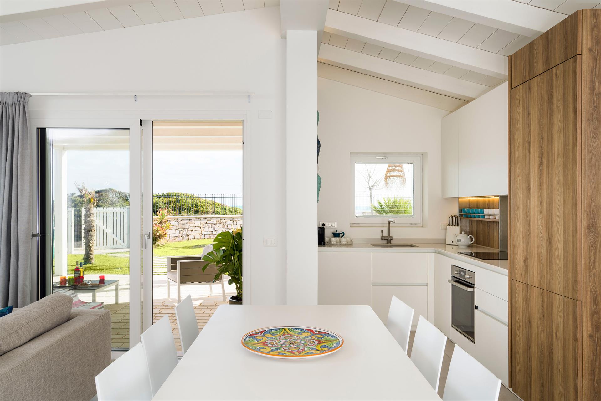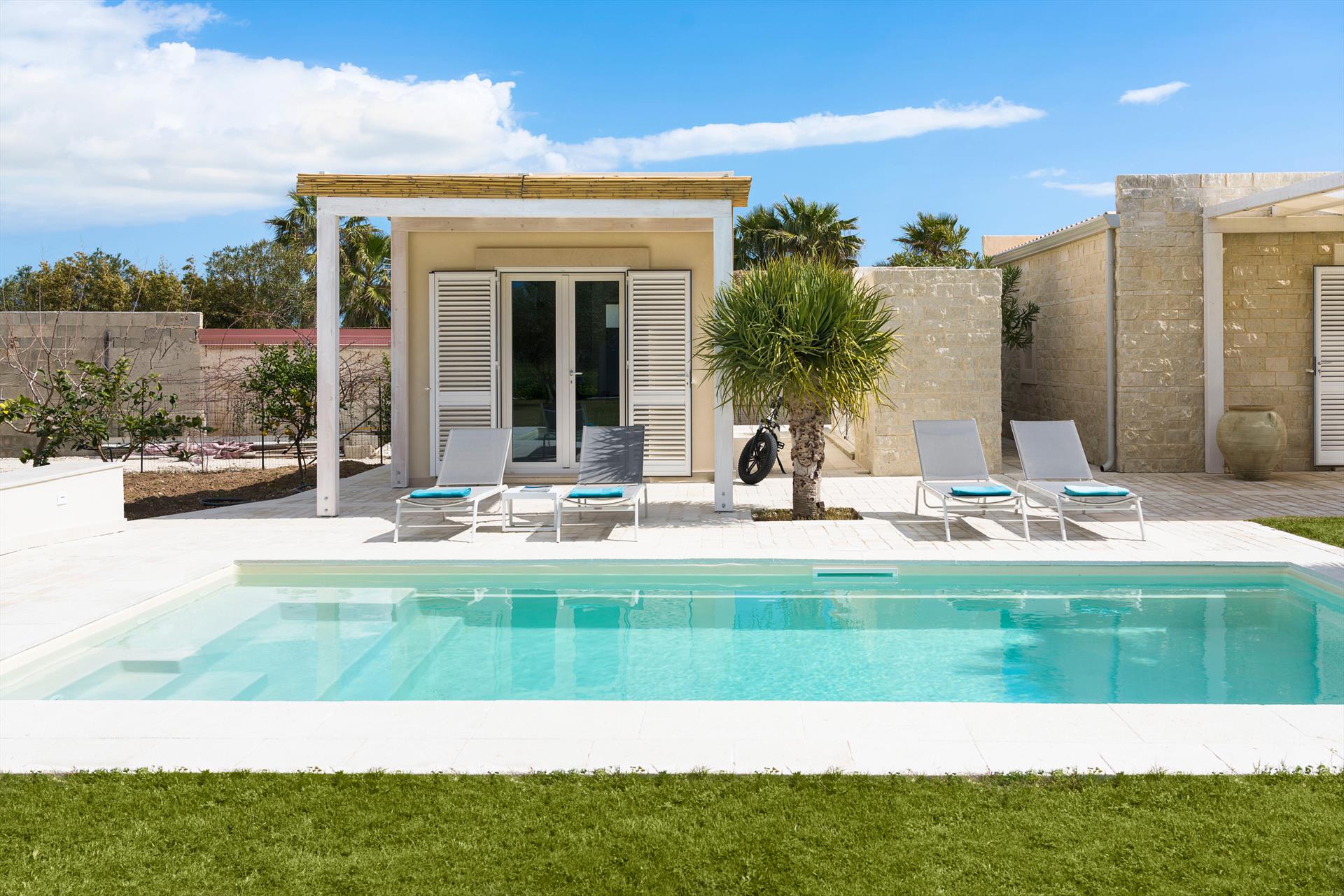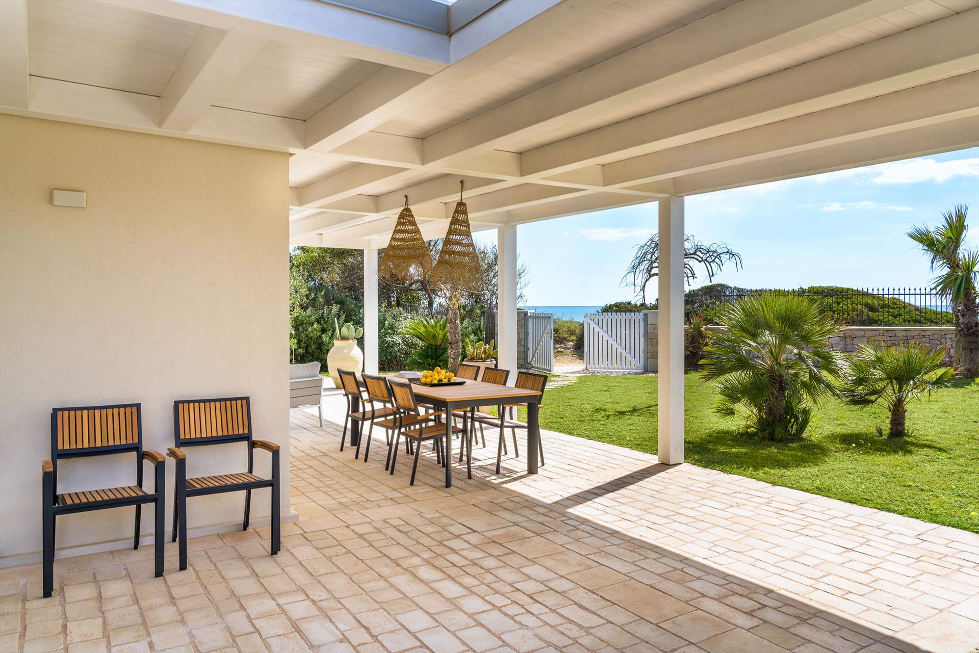 Azulea ist eine exklusive Villa direkt am Meer in Porto Ulisse, an der Südostküste Siziliens. Die Villa, die nur wenige Schritte von einem schönen Sandstrand entfernt ist, ist von einem gepflegten Garten mit Rasen umgeben und verfügt über geräumige Terrassen (teilweise beschattet) und einen schönen Swimmingpool mit Solarium. Kürzlich renoviert, bietet Azulea gemütliche und gut aufgeteilte Innenräume, geschmackvoll eingerichtet und mit dem besten Komfort ausgestattet: Klimaanlage (Klimaanlage und Heizung), Wi-Fi, Waschmaschine, Geschirrspüler, Smart-TV, Außenküche, Grill und Weinkeller. Auf einer Ebene angeordnet, verfügen diese komfortablen Zimmer über einen großen Wohnbereich mit offener Küche, eine Waschküche und vier Doppelzimmer, alle mit Bad mit Dusche.