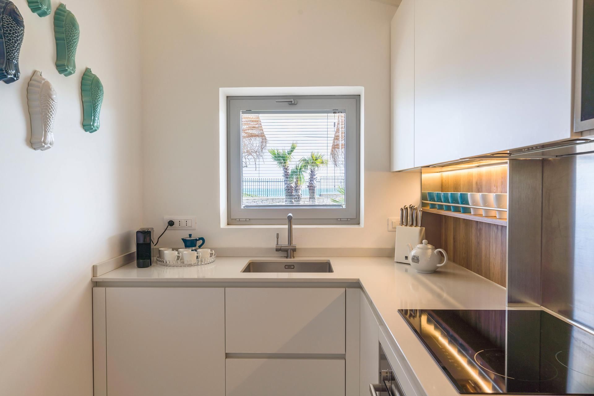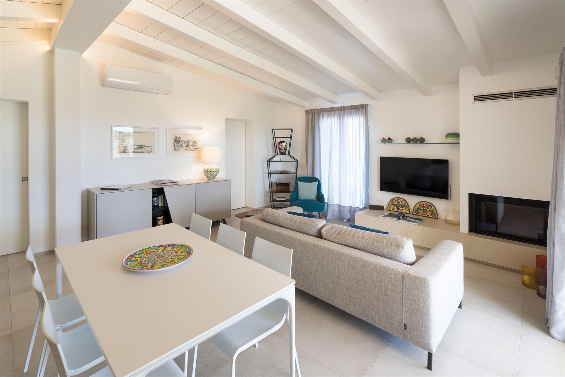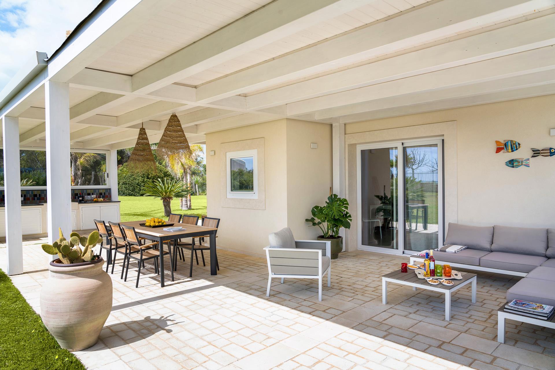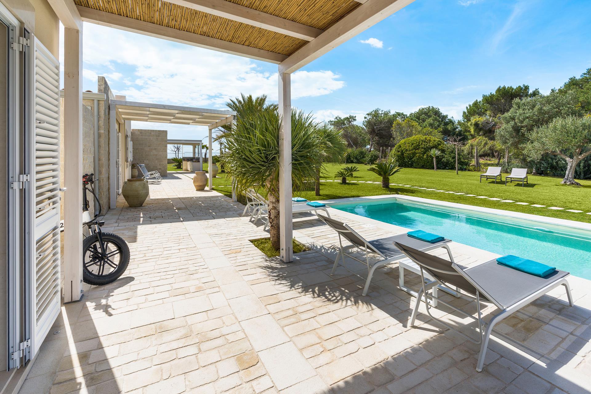 Azulea ist eine exklusive Villa direkt am Meer in Porto Ulisse, an der Südostküste Siziliens. Die Villa, die nur wenige Schritte von einem schönen Sandstrand entfernt ist, ist von einem gepflegten Garten mit Rasen umgeben und verfügt über geräumige Terrassen (teilweise beschattet) und einen schönen Swimmingpool mit Solarium. Kürzlich renoviert, bietet Azulea gemütliche und gut aufgeteilte Innenräume, geschmackvoll eingerichtet und mit dem besten Komfort ausgestattet: Klimaanlage (Klimaanlage und Heizung), Wi-Fi, Waschmaschine, Geschirrspüler, Smart-TV, Außenküche, Grill und Weinkeller. Auf einer Ebene angeordnet, verfügen diese komfortablen Zimmer über einen großen Wohnbereich mit offener Küche, eine Waschküche und vier Doppelzimmer, alle mit Bad mit Dusche.