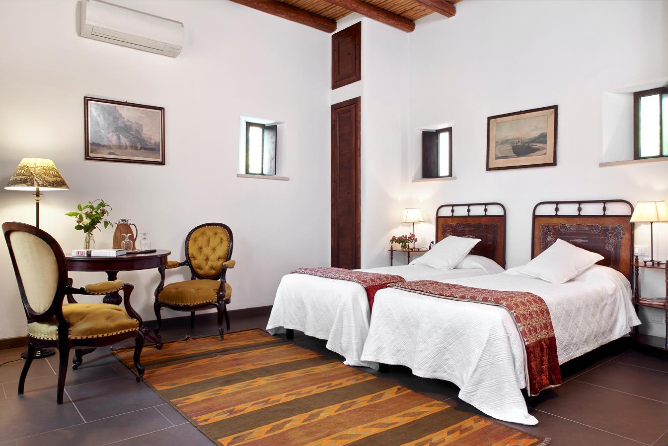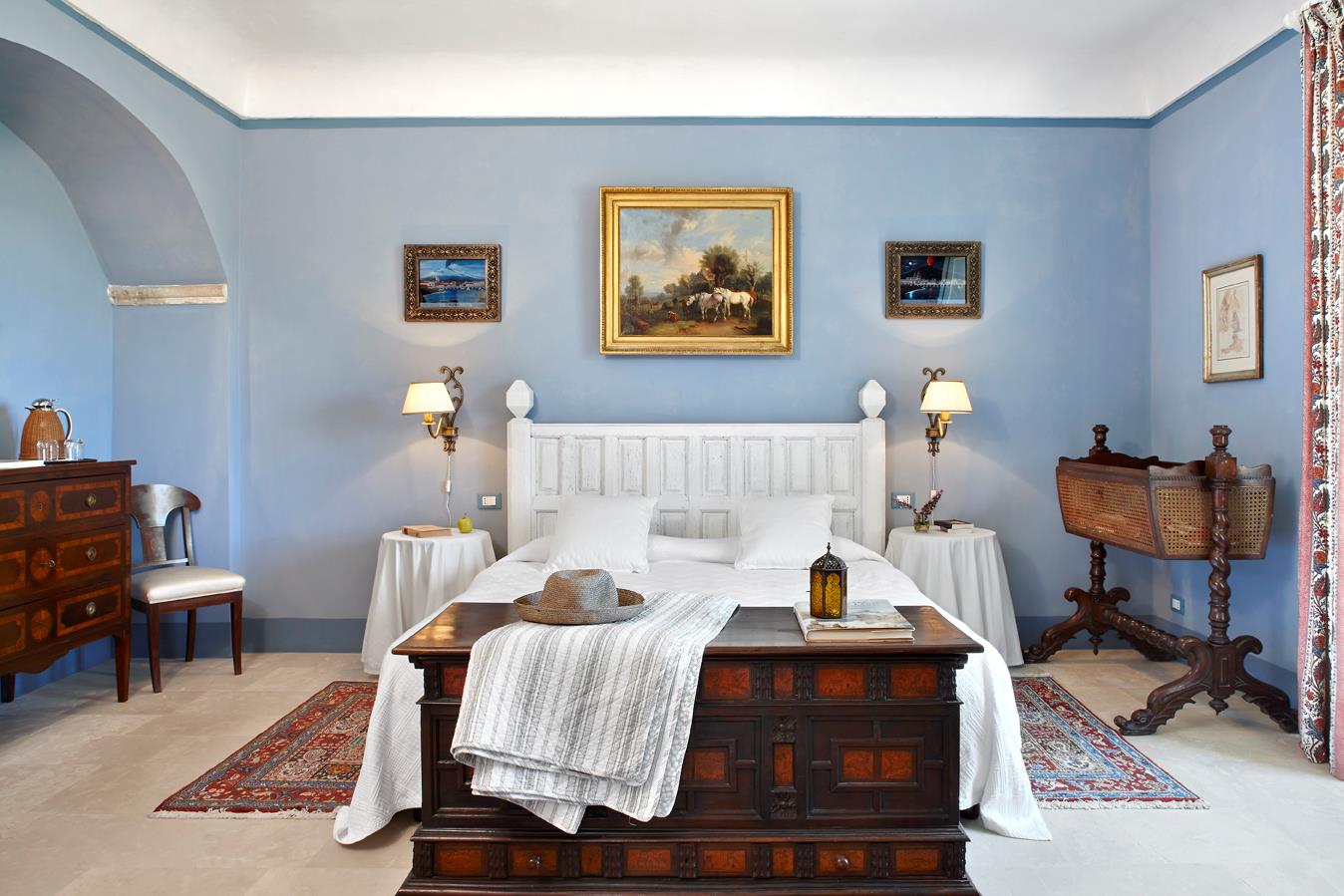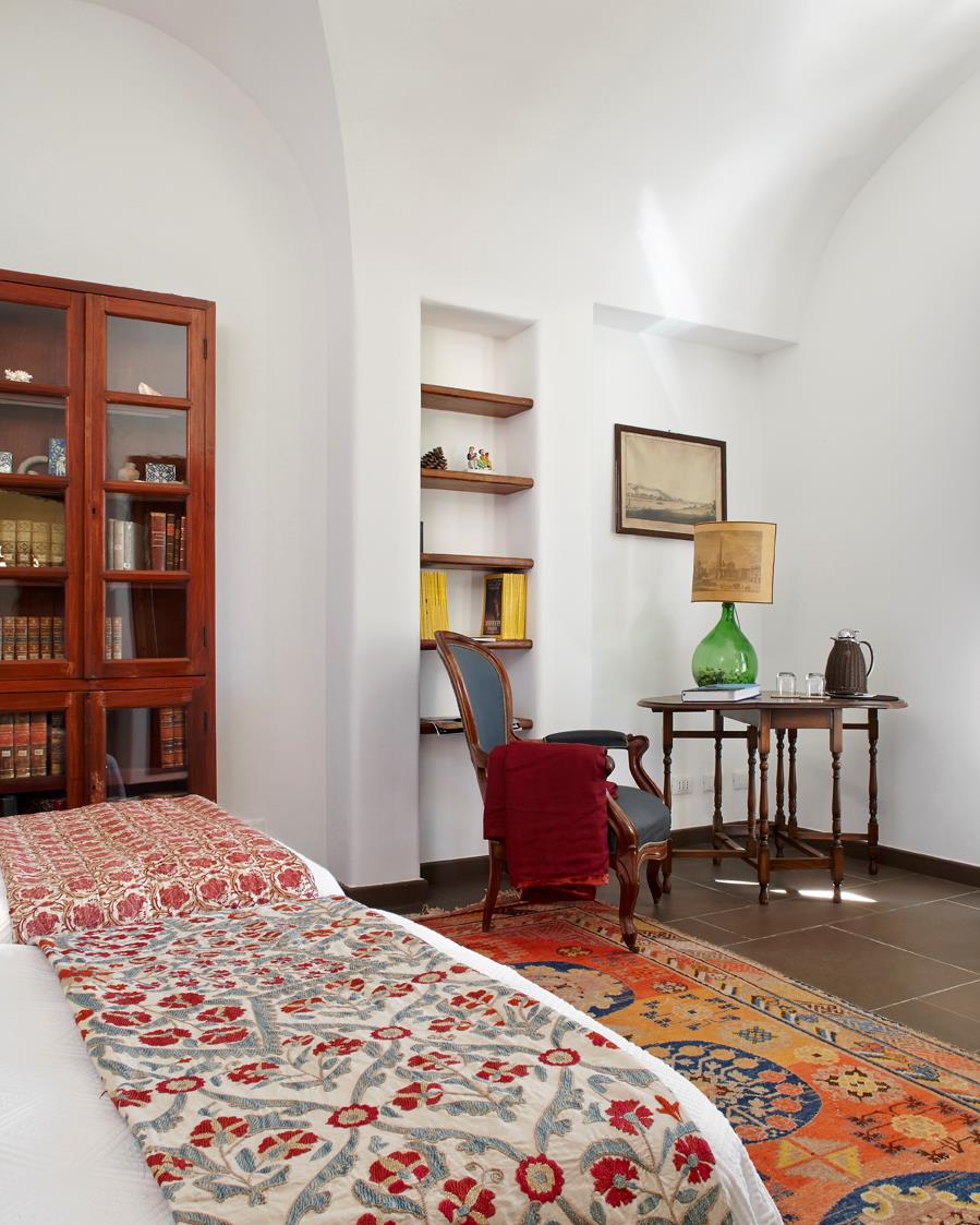 Im Herrenhaus erwarten acht exklusive Gästezimmer anspruchsvolle Besucher. Vier befinden sich auf der oberen Gartenebene, die übrigen öffnen sich direkt zur unteren Gartenterrasse. Jedes Zimmer ist mit erlesenen Antiquitäten und kunstvollen Vintage-Einrichtungsstücken ausgestattet und bietet entweder einen privaten Balkon oder direkten Zugang zu den ruhigen Gärten der Villa.