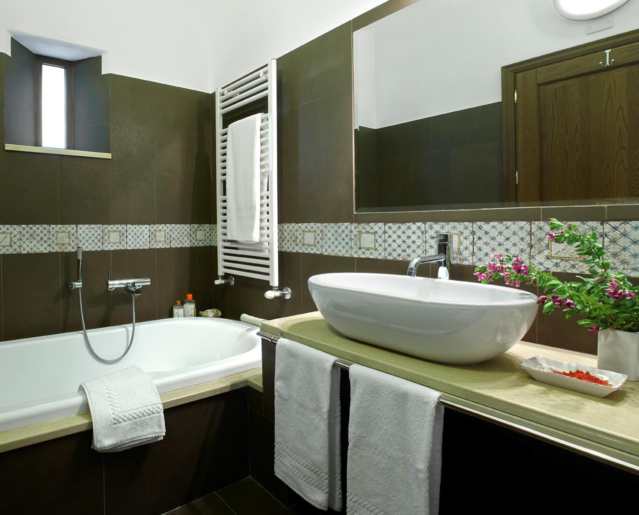 Ein Ort der Stille. Im Obergeschoss der Villa befindet sich die Bibliothek – ein Refugium der Ruhe, geschaffen für Besinnung und Entspannung. Sanftes Licht fällt durch die Fenster mit Blick auf die Gärten, und deckenhohe Regale bergen Monographien und Bände in verschiedenen Sprachen. Genießen Sie eine Tasse Tee oder ein Glas biologischen Orangensaft, während Sie in Bildbänden zur Kunst- und Fotografie blättern oder sich in die reiche Geschichte der Region vertiefen – dank der sorgfältig ausgewählten Bücher, die den Gästen der Villa zur Verfügung stehen.