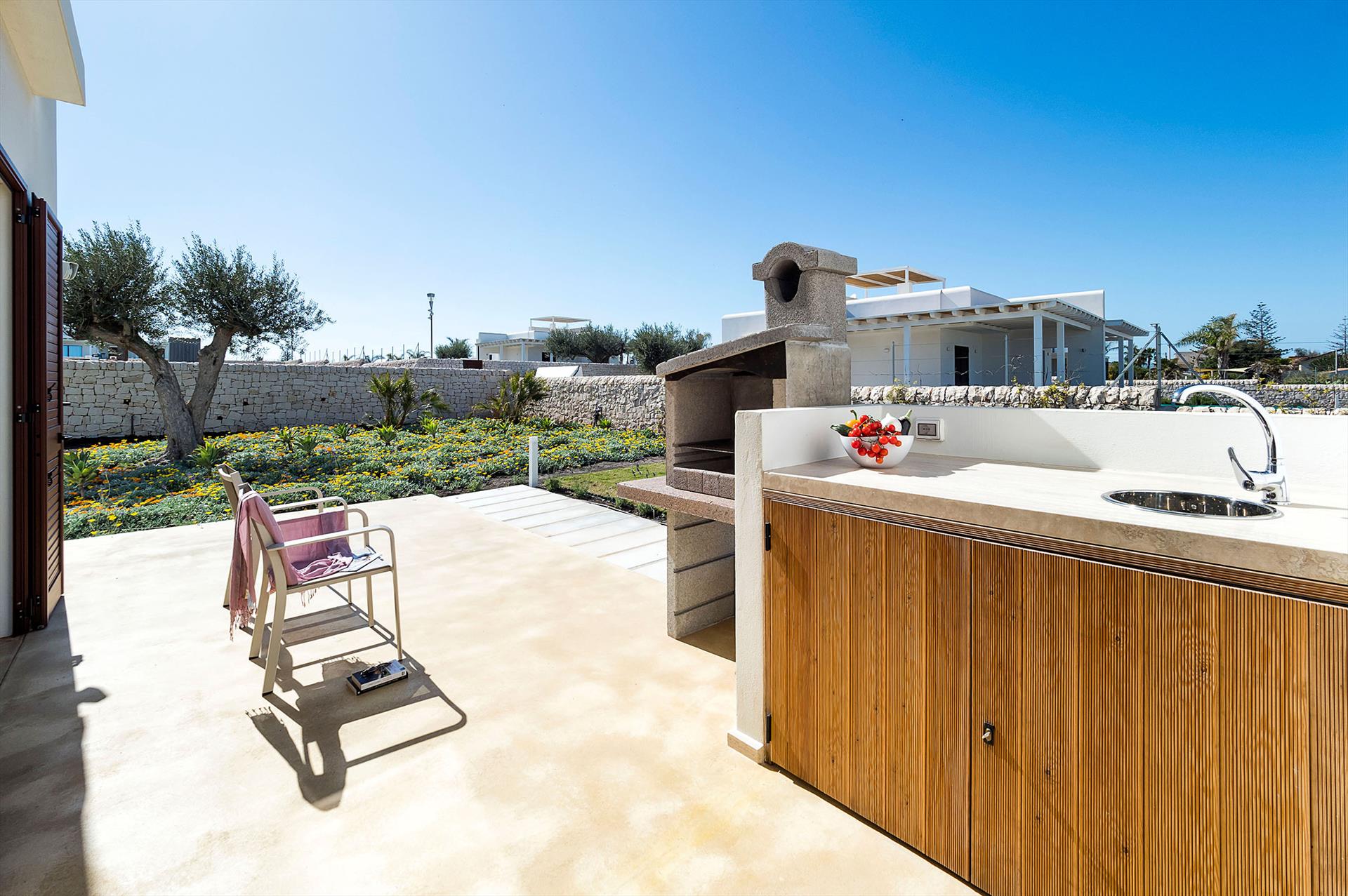 Das Haus wurde erst kürzlich erbaut und bietet helle, luftige Räume, die geschmackvoll und zweckmässig eingerichtet sind; im Erdgeschoss befinden sich ein Wohn-/Esszimmer mit einer gut ausgestatteten Küche, drei Schlafzimmer und drei Badezimmer. Im ersten Stock, der über eine Aussentreppe erreichbar ist, befindet sich eine kleine Terrasse. Villa Lavanda verfügt ausserdem über eine Klimaanlage, Internet-Wlan, Sat-TV,  iPod Dockingstation, Waschmaschine, Spülmaschine, Safe und eine Aussendusche. Die Villa liegt nicht weit entfernt vom faszinierenden und belebten Küstenort Marzamemi und ist ein idealer Ausgangsort, um einige der schönsten Orte im Südosten Siziliens, wie Noto, Syrakus und die Barockstädte im Val di Noto, sowie den nahe gelegenen Naturpark Vendicari, aber auch Taormina und den Vulkan Ätna zu besuchen.