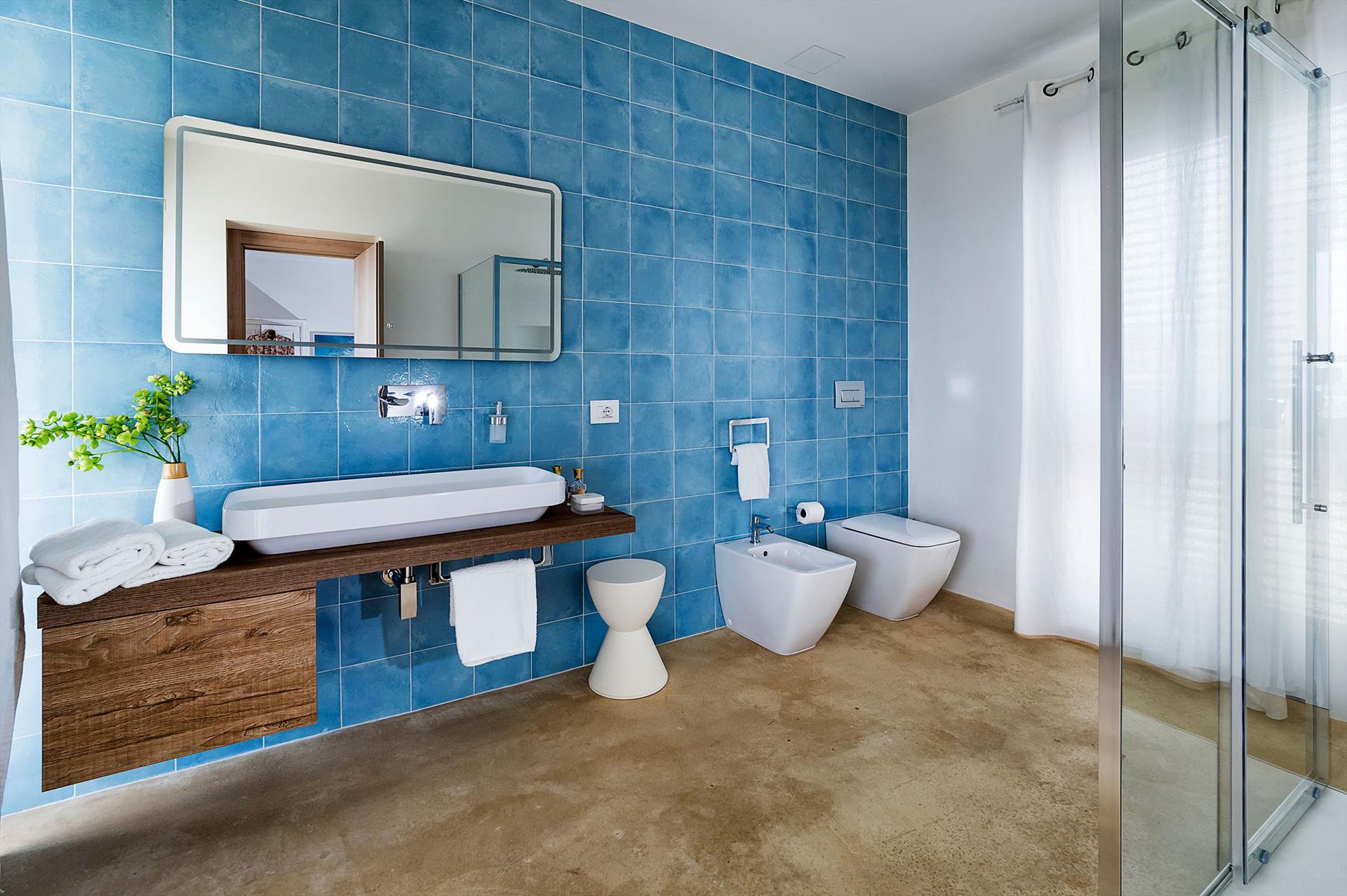 • 3 ensuite Badezimmer, jedes mit Einzelwaschbecken, Dusche, Bidet, Toilette und Föhn