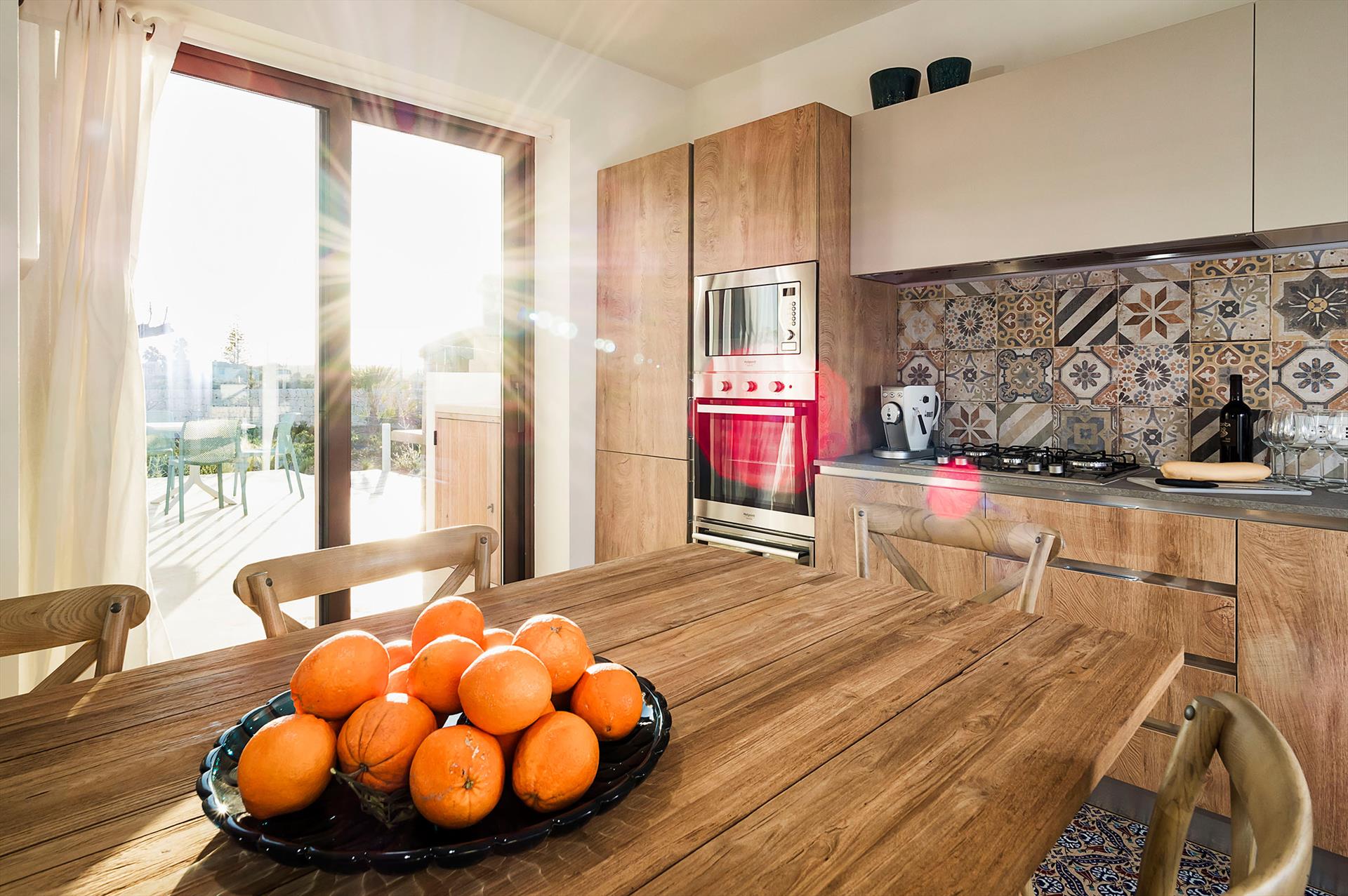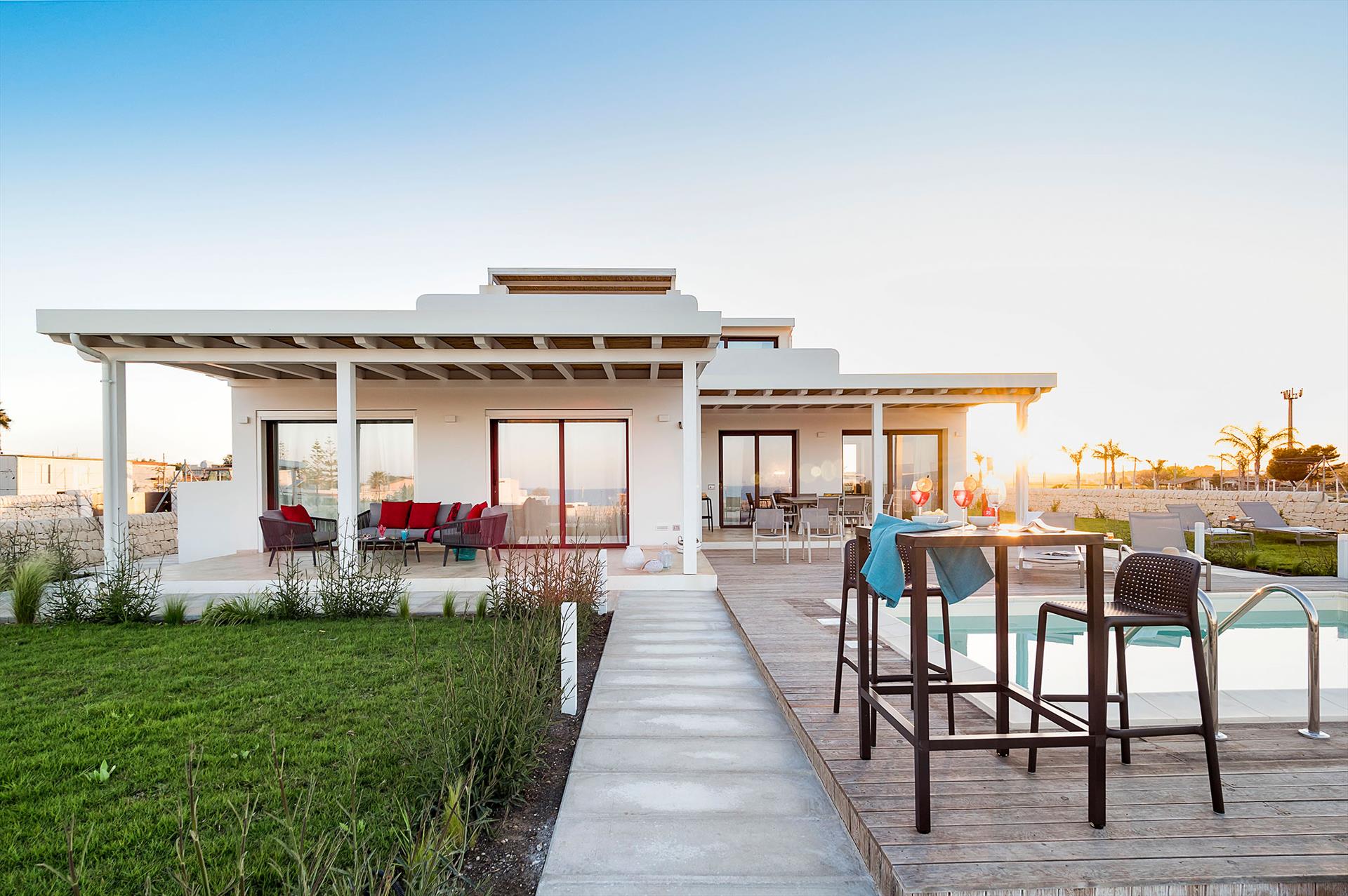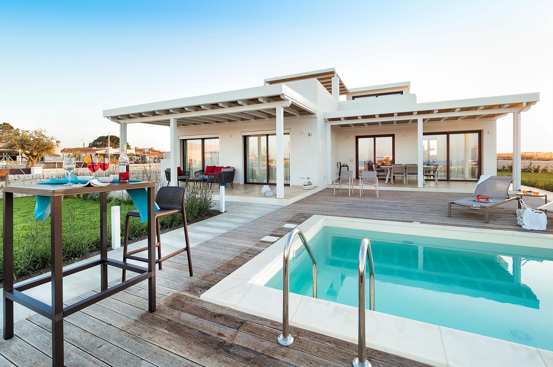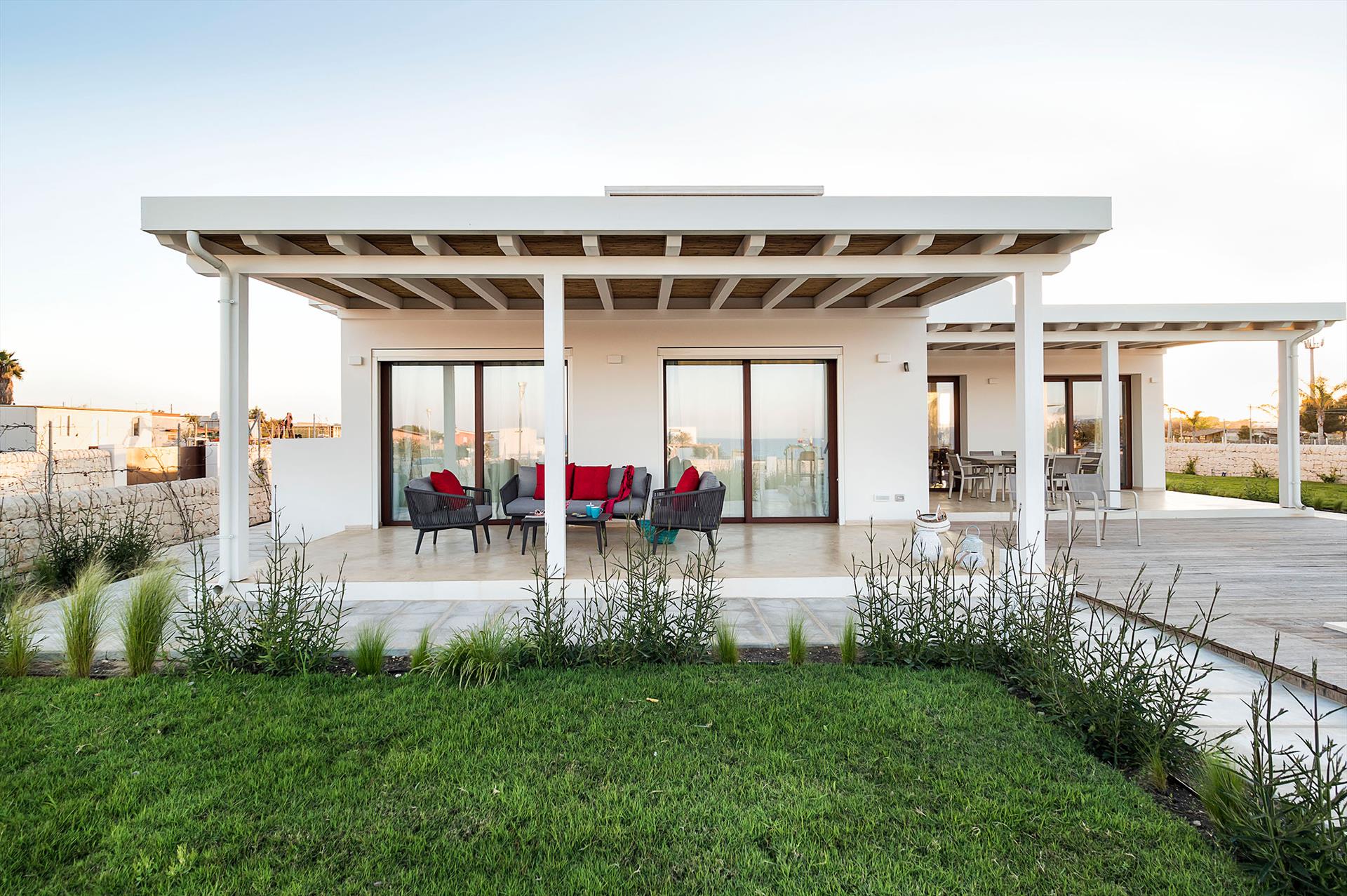 Die herrliche, erst kürzlich im mediteranen Stil erbaute Villa Ulivo, liegt nur wenige Schritte vom zauberhaften Strand von San Lorenzo entfernt, der zu den schönsten Siziliens zählt und dem der bekannte Badeort seinen Ruf zu verdanken hat. Die Villa liegt eingebettet in einen gepflegten Garten mit kleinem privaten Pool. Das gesamte Haus ist umgeben von grossen, überdachten und geschmackvoll ausgestatteten Terrassen, mit zum Teil fantastischem Blick aufs Meer. Im Innenbereich bietet die Villa helle und einladende Räume, mit moderner und zweckmässiger Einrichtung. Im Erdgeschoss befinden sich ein Wohn-Esszimmer, eine Küche, drei Schlafzimmer und 3 Bäder. Den ersten Stock erreicht man über eine Aussentreppe. Dort gibt es eine überdachte, panoramische Terrasse. Die Villa verfügt desweiteren über Klimaanlage, Wlan, Sat-TV, iPod Dockstation, Waschmaschine, Spülmaschine, Safe und eine Aussendusche. Der beeindruckende Küstenort Marzamemi liegt nur wenige Kilometer entfernt. Weitere sehenswerte Ort im Südosten Siziliens, wie Noto, Syrakus, die Barockstädte des Val di Noto und der Naturpark Vendicari, aber auch Taormina und der Park des Vulkanes Ätna, sind bequem zu erreichen.
