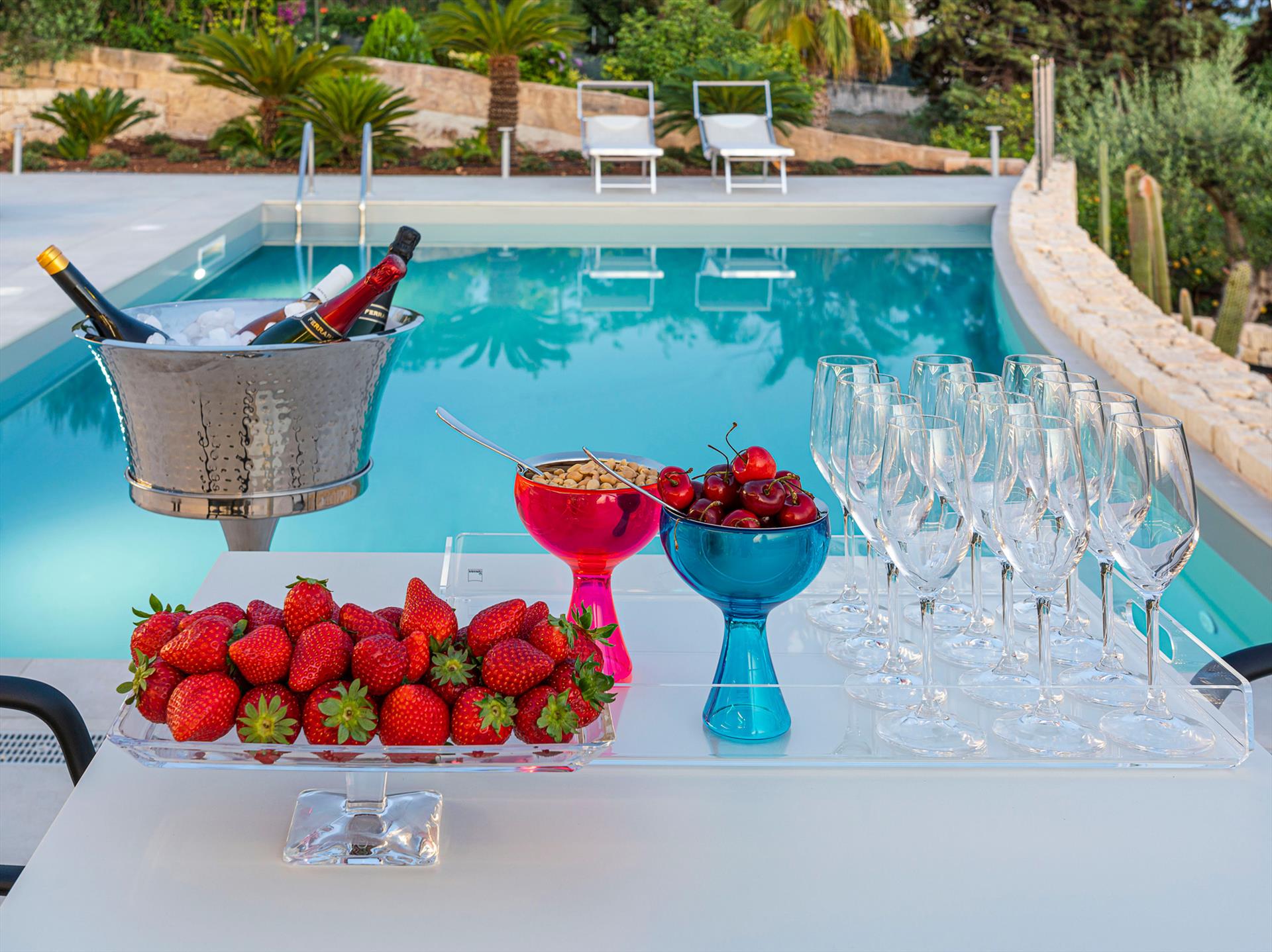 Die Villa ist voll klimatisiert und verfügt zudem über Wi-Fi, einen Safe, zwei Geschirrspüler, einen Waschtrockner und eine Außenküche. Der exklusive Pool ist beheizt und wird mit Salz anstelle von Chlor gereinigt.