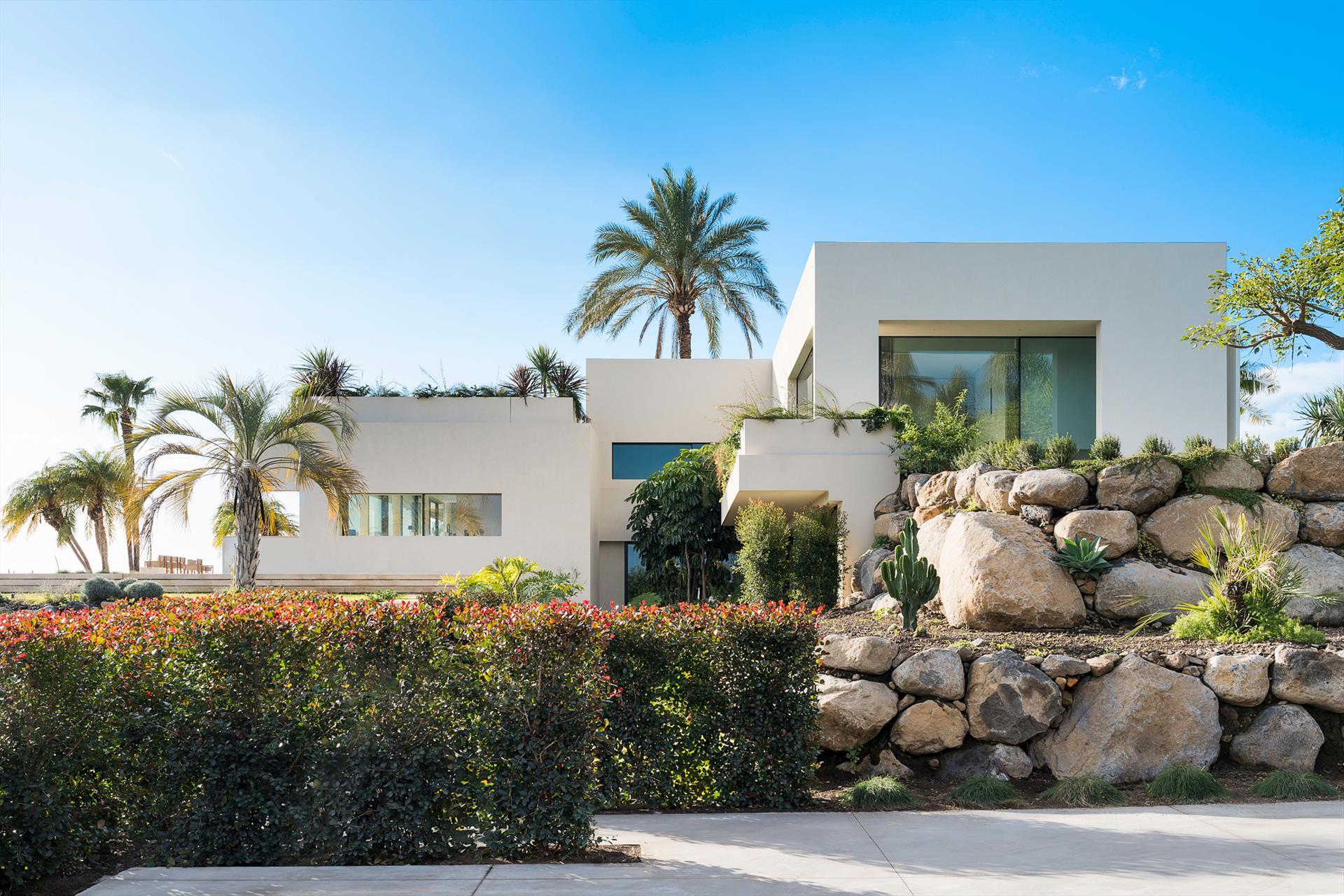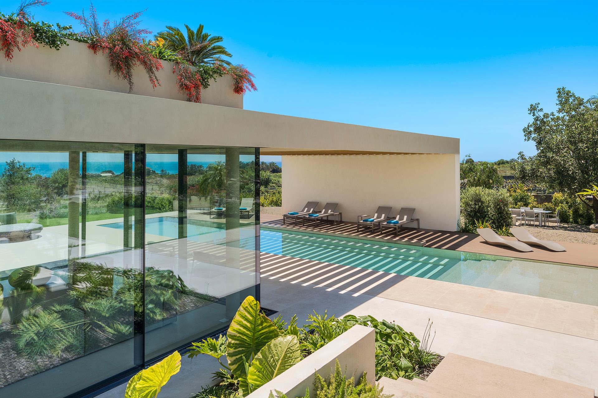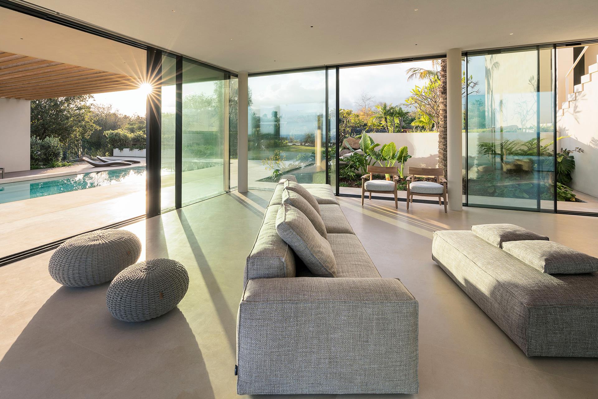 In einem reservierten Bereich des Anwesens wohnt ein junges Paar, das sich diskret und professionell um die Pflege des Hauses, des Gartens und des Pools kümmert.
