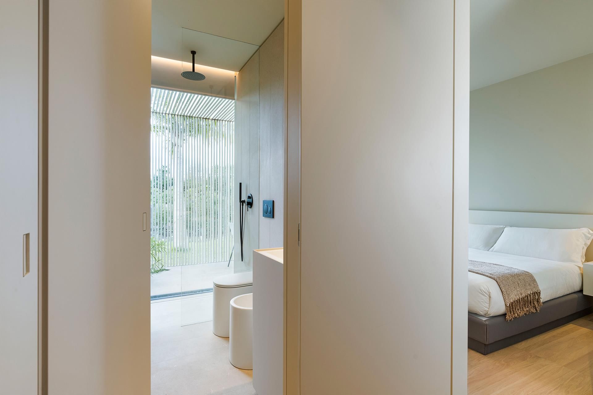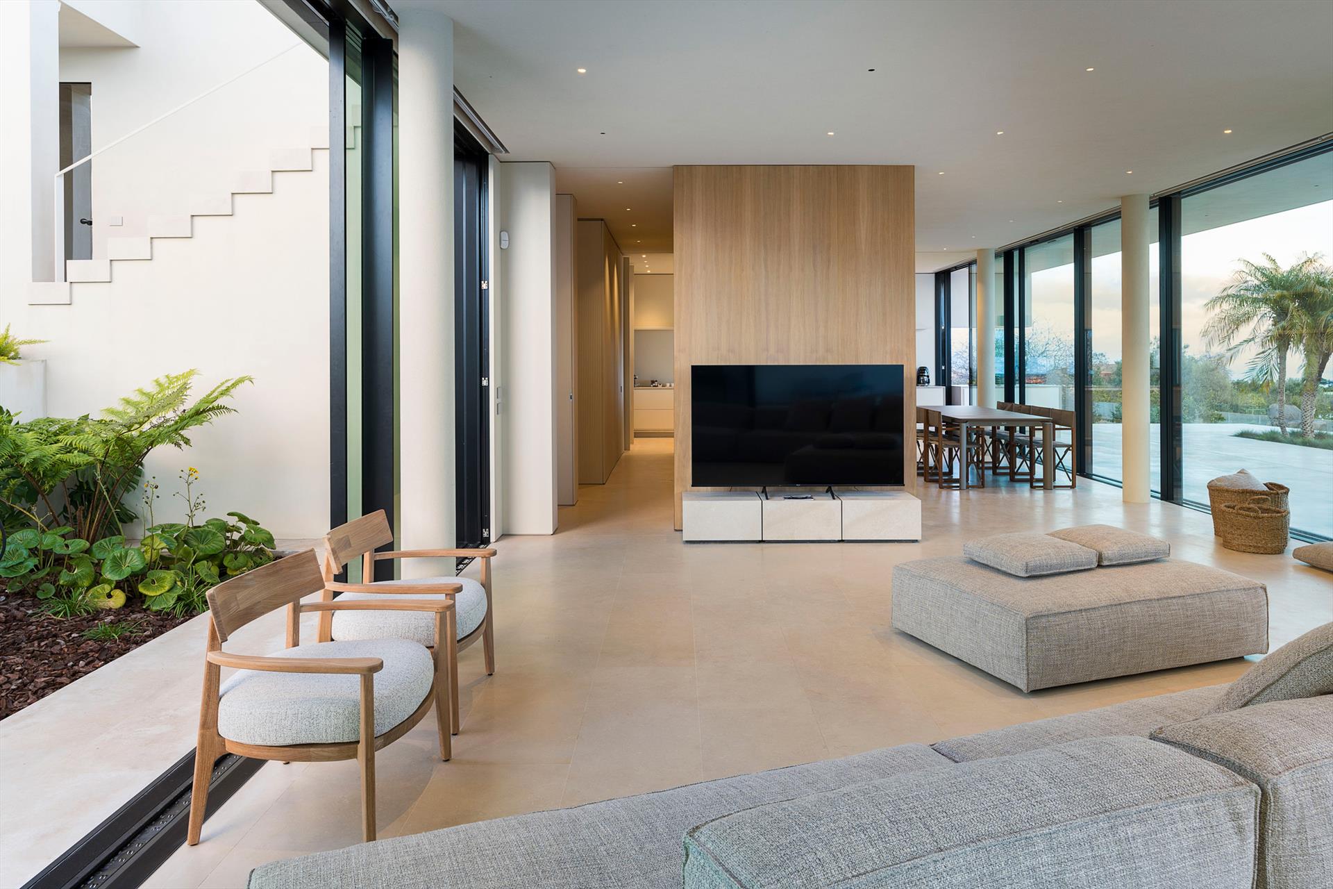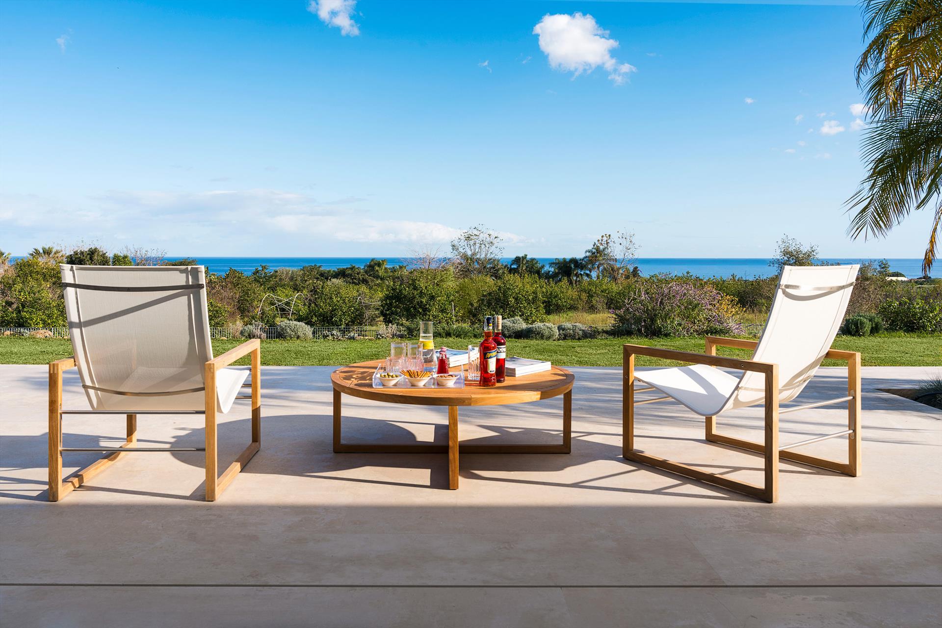 In einem reservierten Bereich des Anwesens wohnt ein junges Paar, das sich diskret und professionell um die Pflege des Hauses, des Gartens und des Pools kümmert.
