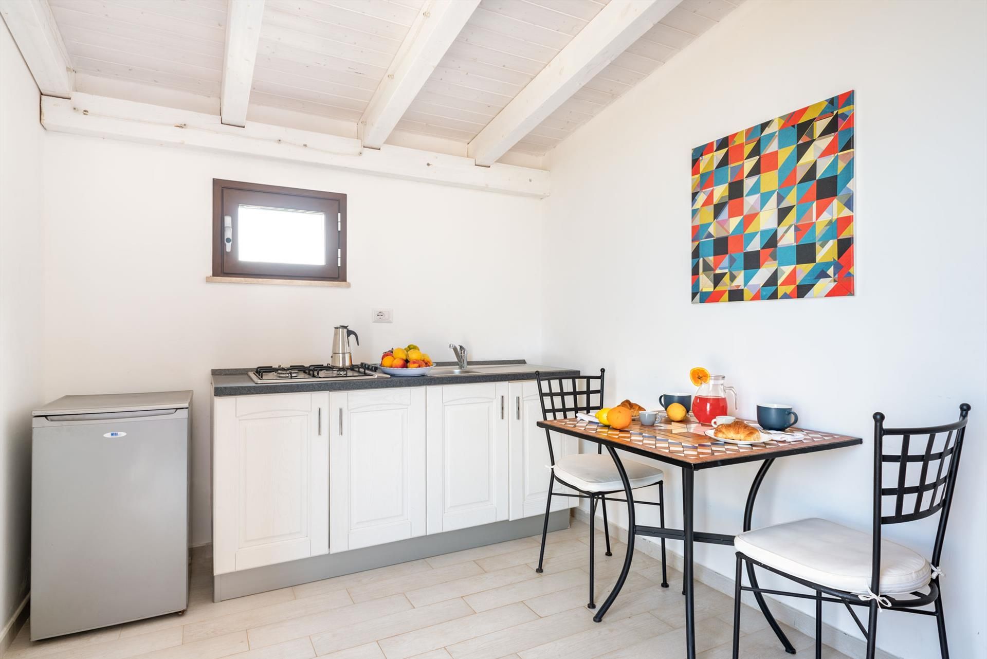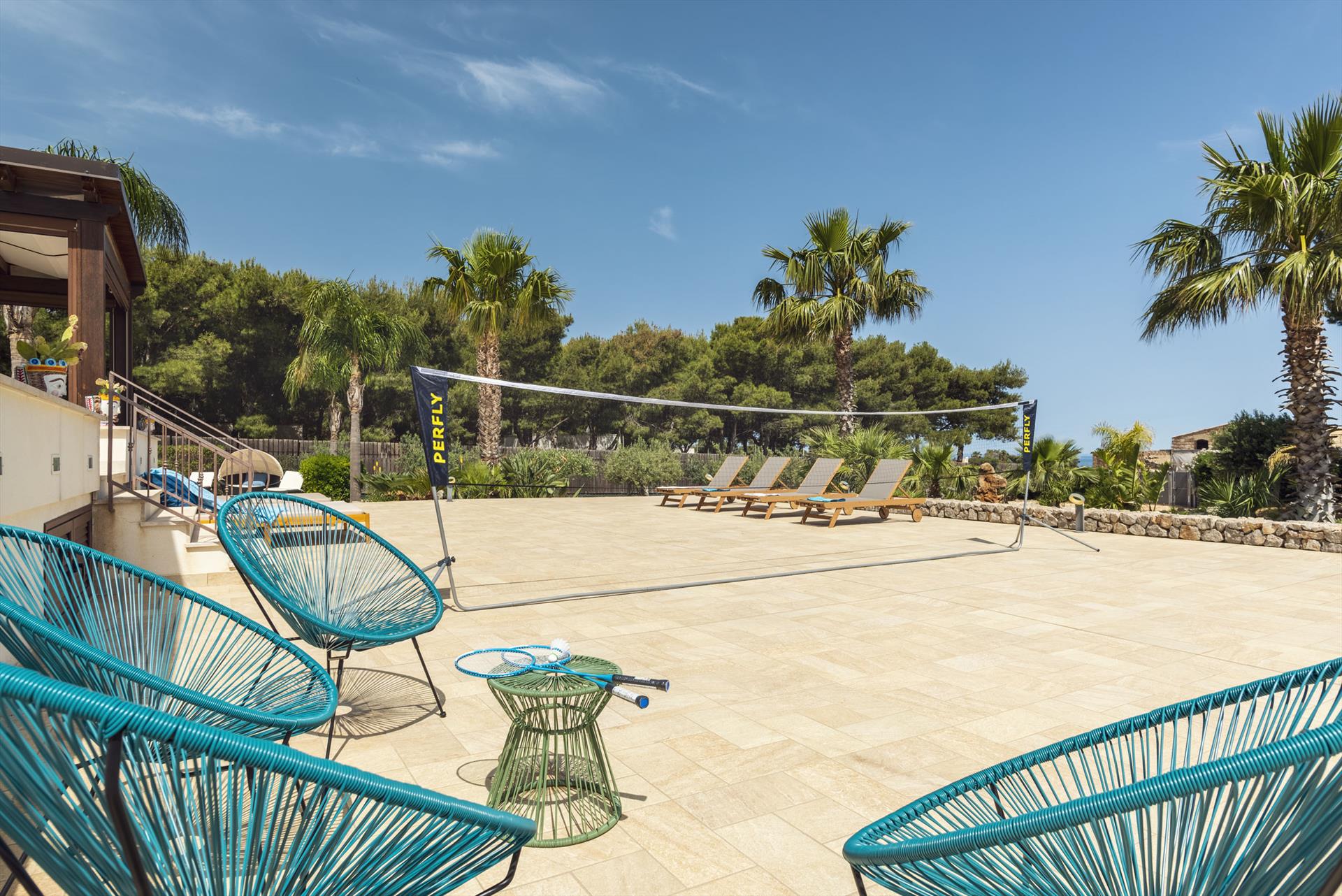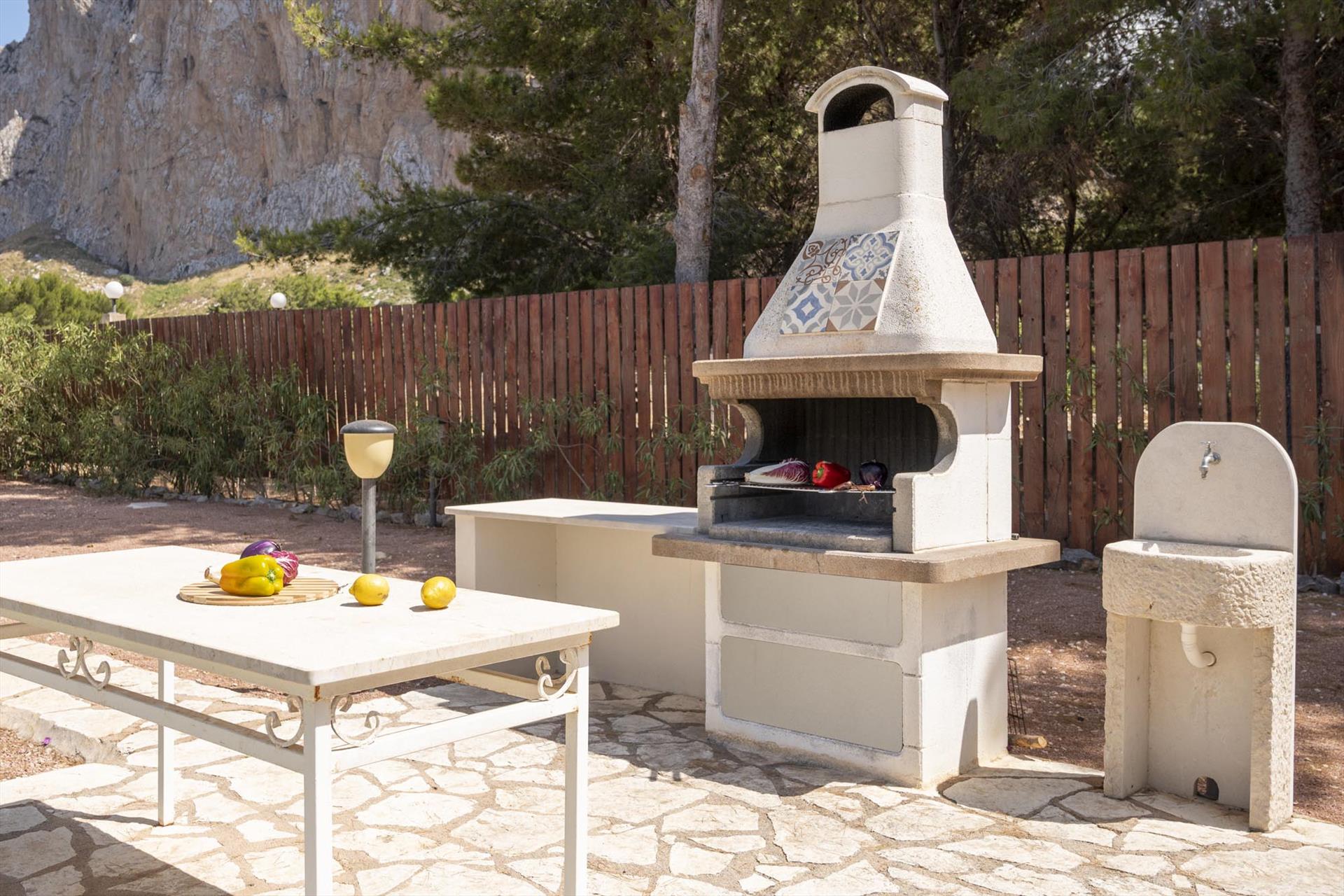 Von den Terrassen geniessen Sie einen fantastischen Meerblick und Blick auf den wichtigsten Berg San Vito lo Capo. Die untere Terrasse ist mit Sonnenschirmen ausgestattet, die obere Terrasse ist teilweise überdacht. Beide sind mit bequemen, ansprechenden Loungemöbeln ausgestattet. Im überdachten Terrassenbereich befindet sich ein grosser Esstisch und eine komfortable Aussenküche.