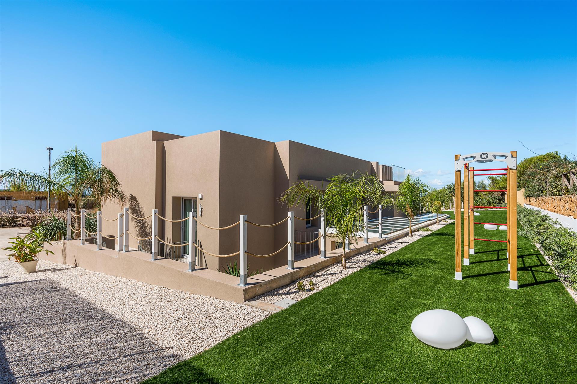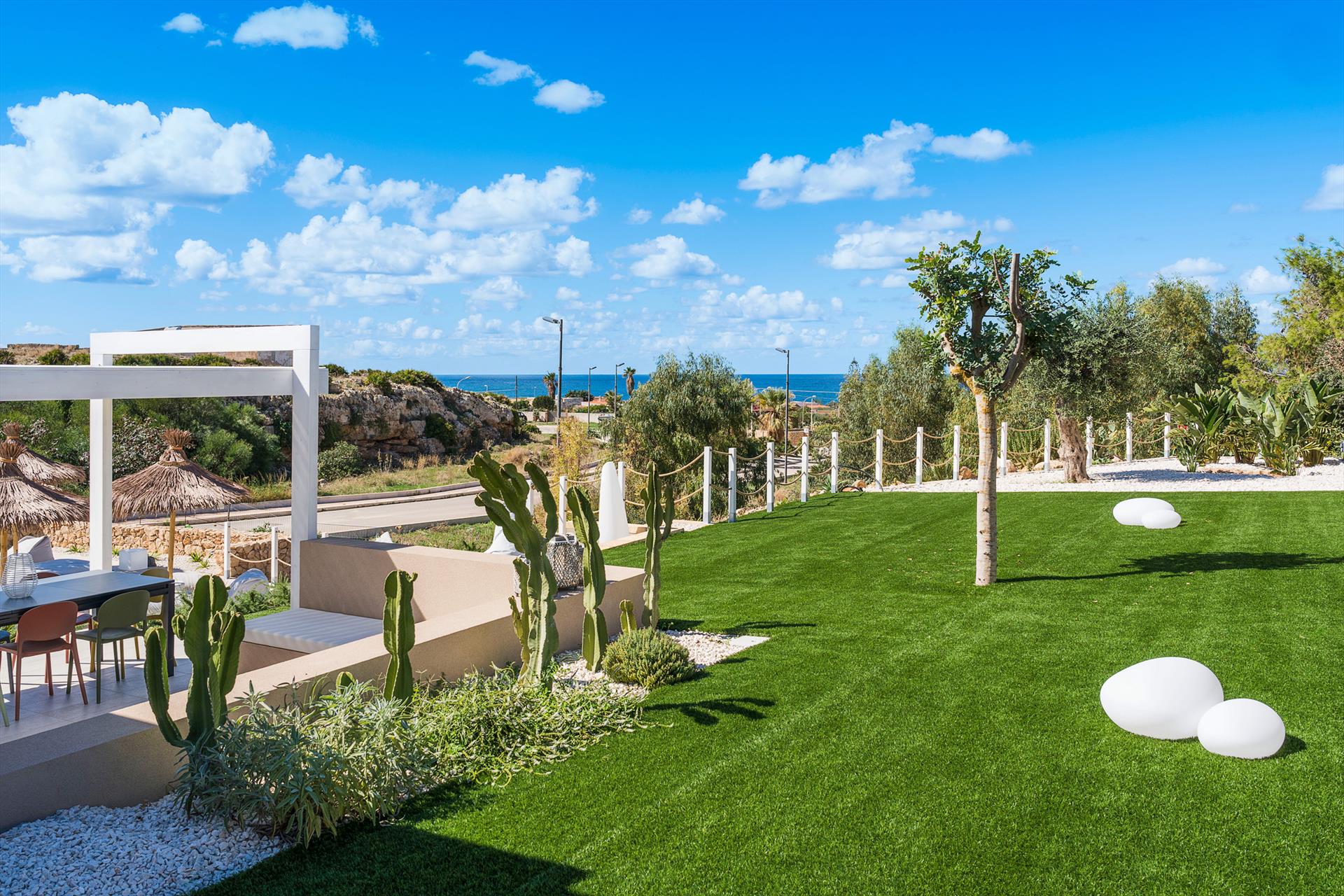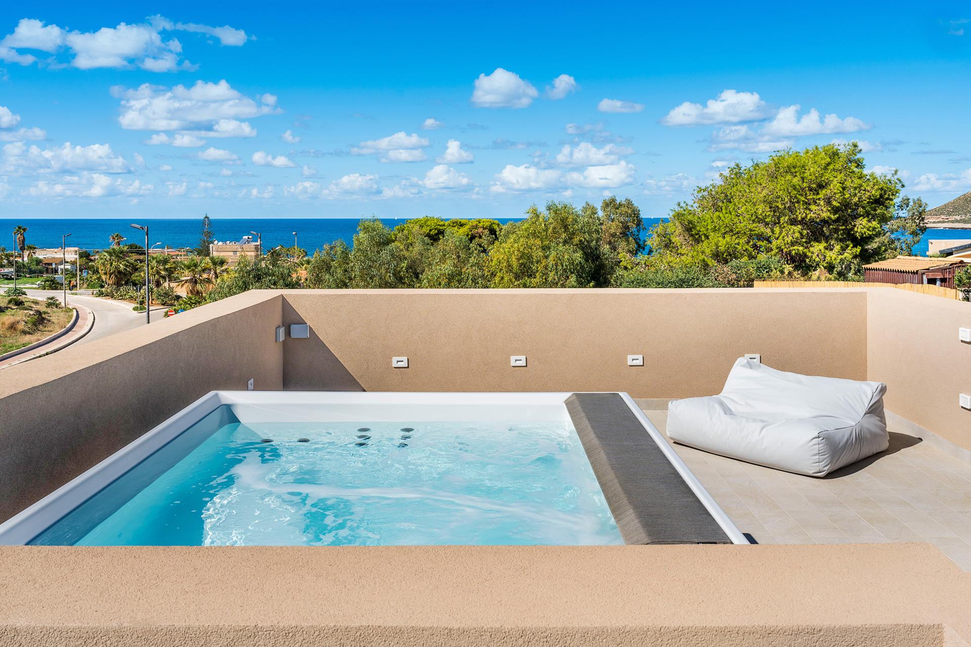 Die exklusive Residenz liegt an einer der Straßen, die von Custonaci zum Meer führen, und ist von einem weitläufigen, gepflegten Garten mit einem umweltfreundlichen Rasen umgeben. Der Garten verfügt über einen schönen Swimmingpool mit Sonnenbereich, einen Whirlpool und Panoramaterrassen, die einen bezaubernden Blick auf den Monte Cofano und das Meer bieten.