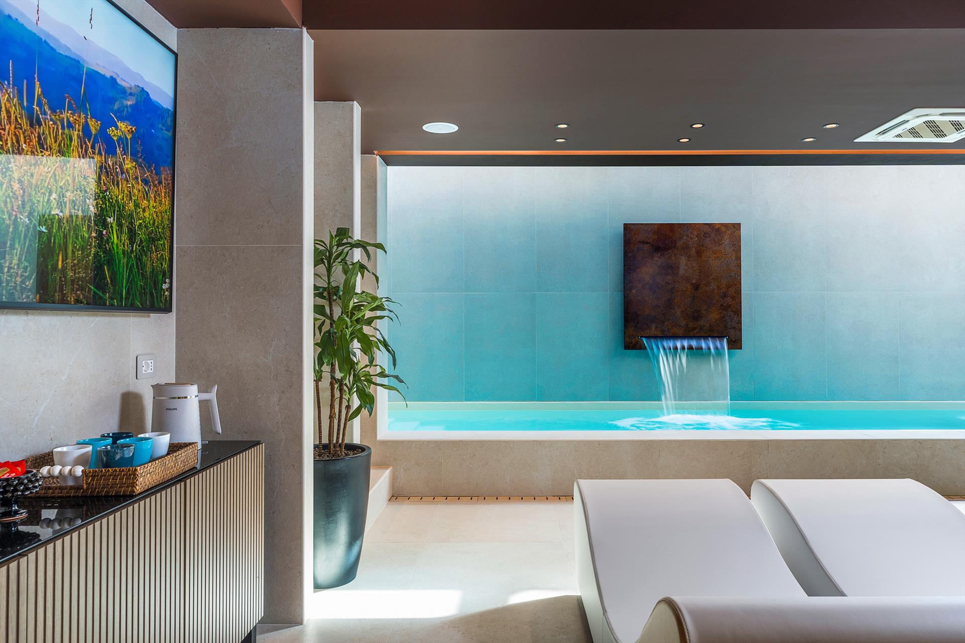 Privater Innenpool mit Hydromassage: Größe: 2,00 x 9,00 m, Tiefe: min. 1,20 m - max. 1,20 m. Geöffnet vom 01.01. bis 31.12.Beheizt auf 28° C