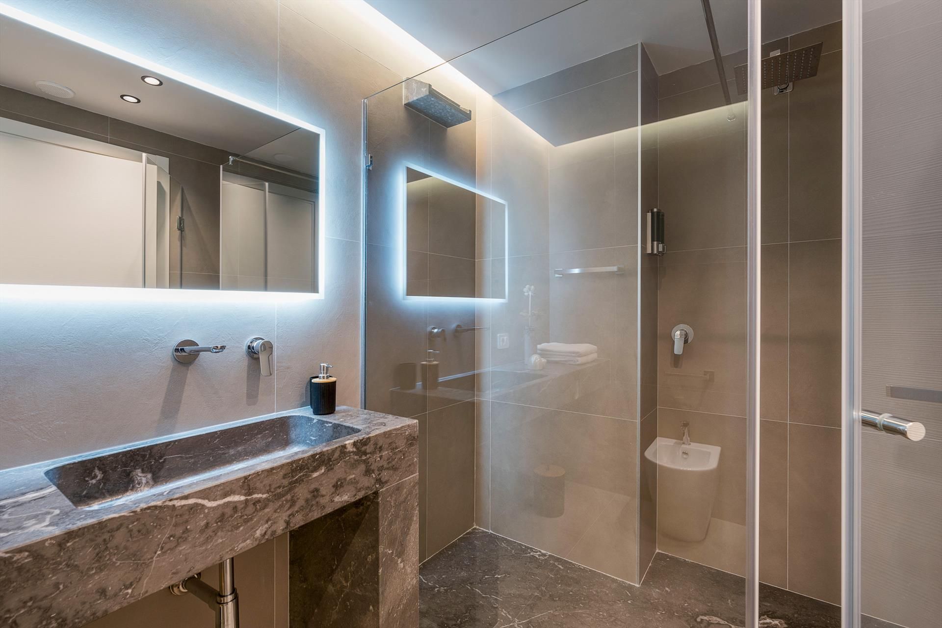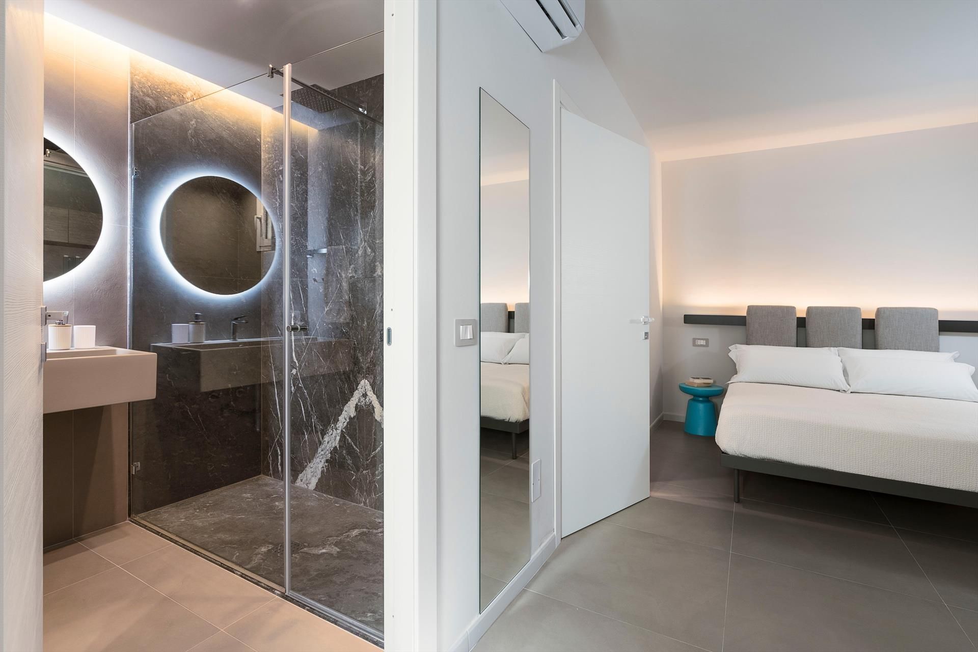 Alle Schlafzimmer verfügen über ein privates Badezimmer mit Dusche, Klimaanlage, Smart-TV, Safe und Minibar.