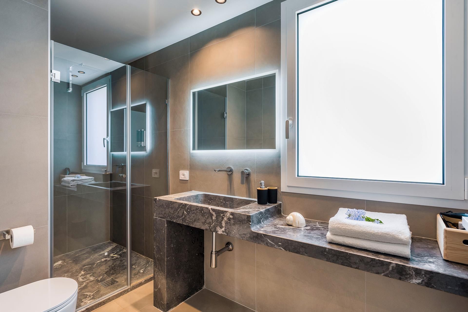 Die Residenz ist zudem mit einer Klimaanlage (in allen Räumen), WLAN, sechs Smart-TVs, einer Waschmaschine, einem Trockner, einem Geschirrspüler, einem Elektro- und Mikrowellenherd, einer Espresso- und Filterkaffeemaschine, einem Wasserfilter, einem Eiswürfelbereiter, einem Grillbereich und privaten Parkplätzen ausgestattet.