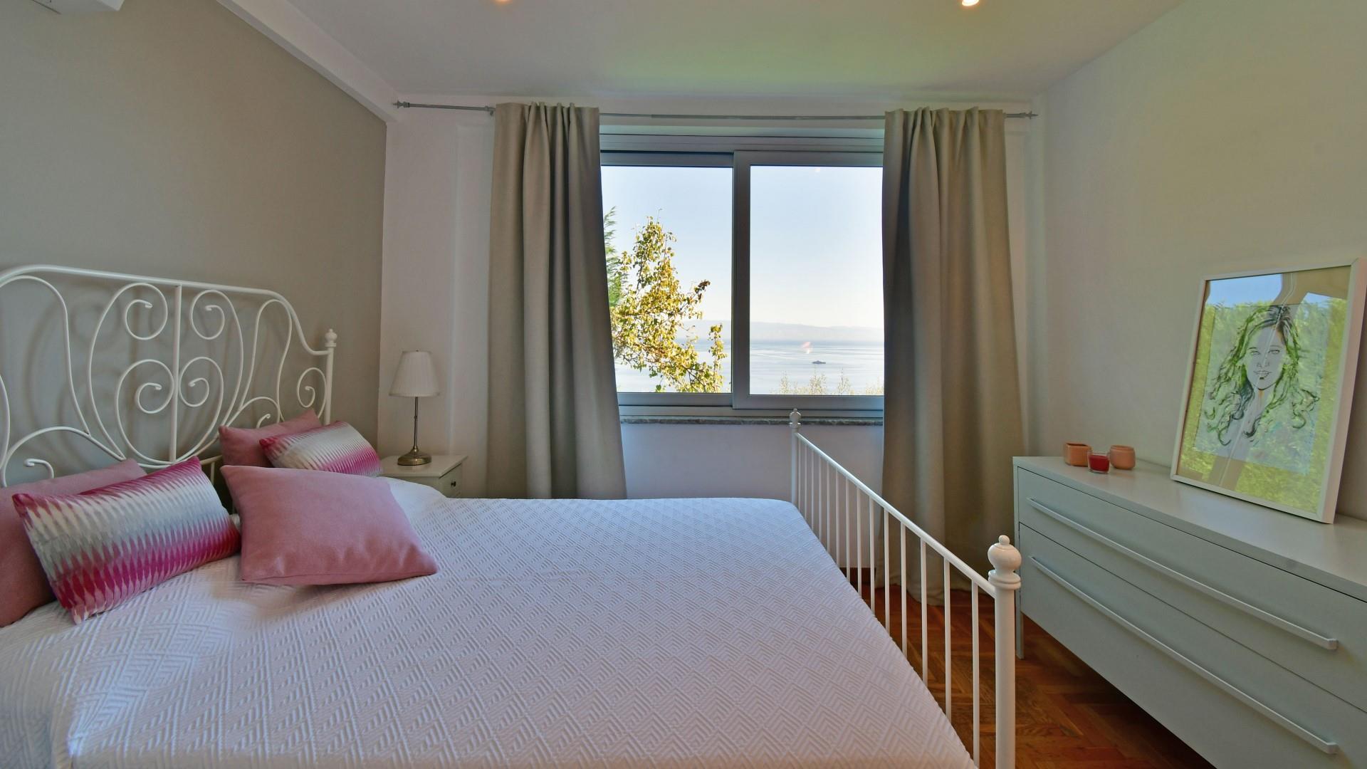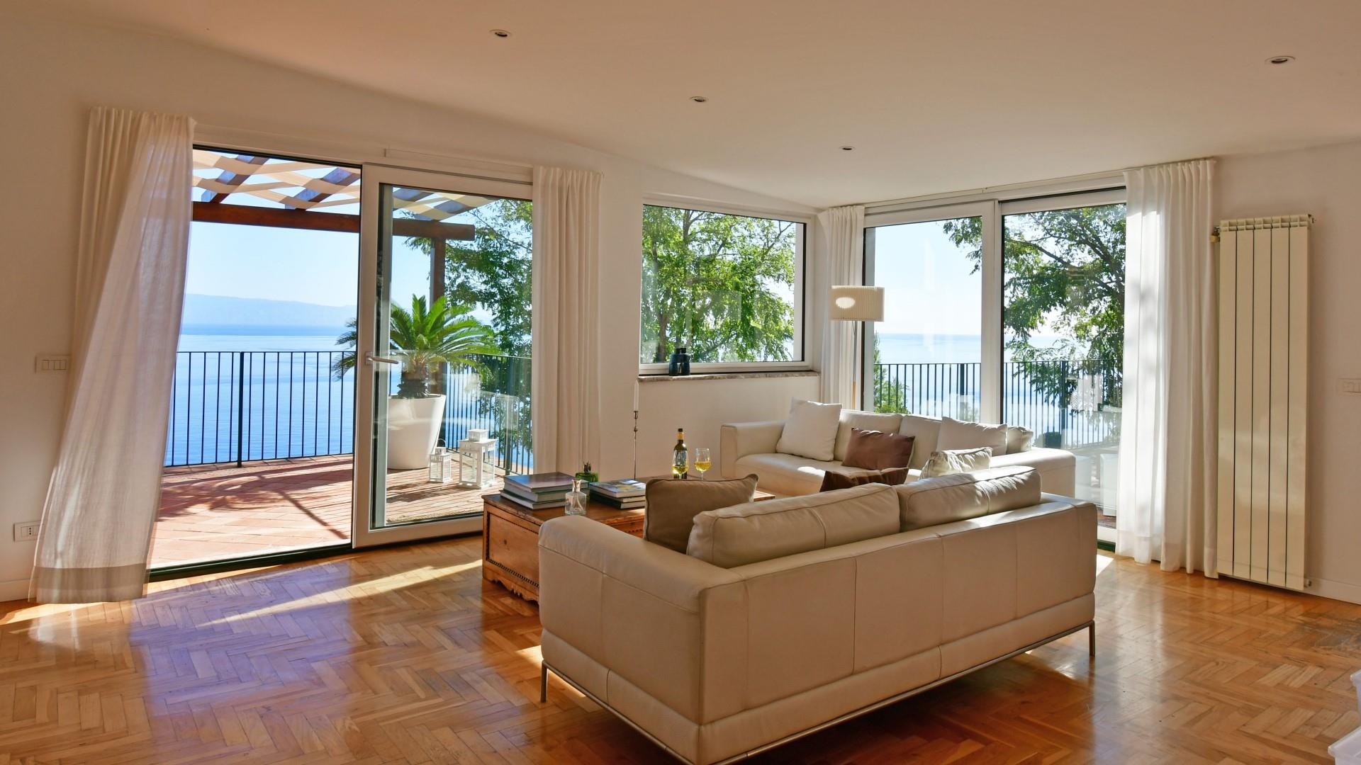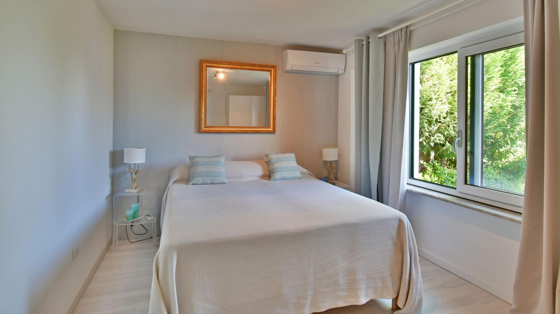 Das Interieur ist auf Komfort ausgelegt, mit einer attraktiven Mischung aus modernen Möbeln und einer Kombination aus großen Fenstern und hellem Parkett, die die Räume hell und luftig machen, die großzügigen Räume bieten Privatsphäre. Auf der oberen Ebene ist der geräumige Wohnbereich, der sich auf die Terrasse mit malerischem Meerblick erstreckt, der Ort für gesellige Zusammenkünfte. Auf einer noch tieferen Ebene lädt der große Infinity-Pool zu einem unvergesslichen Blick aufs Meer ein, und die Liegewiese ist so angelegt, dass man sich dank des romantischen Baldachins und eines attraktiven Designersessels im Zeichen schlichter Eleganz vollkommen entspannen kann. Wem die vielen Treppen nicht genügen, um sich fit zu halten, der wird den kleinen Fitnessraum auf der unteren Ebene sicher zu schätzen wissen.