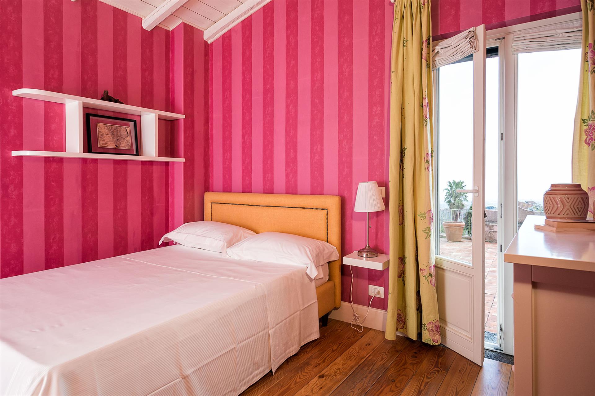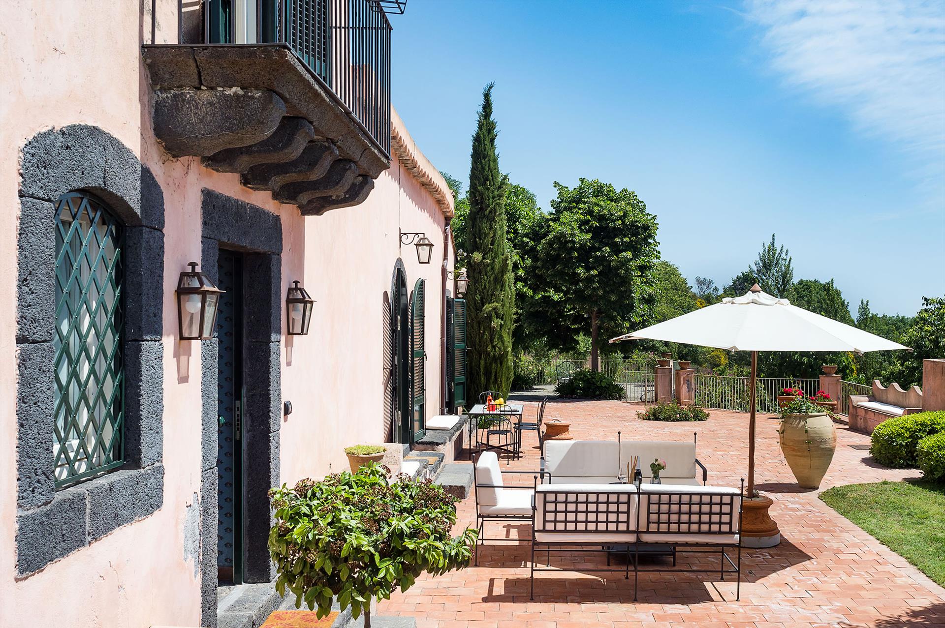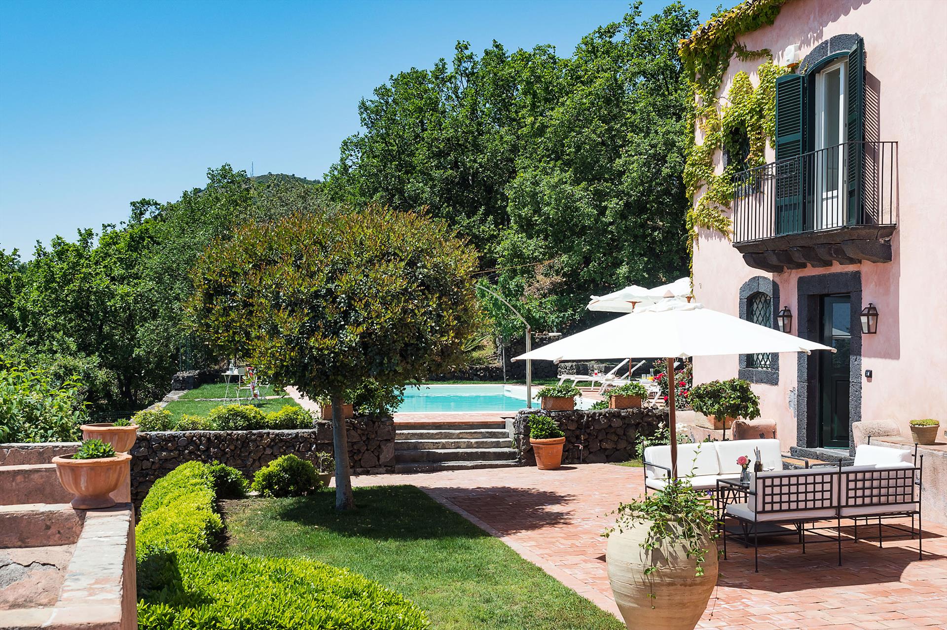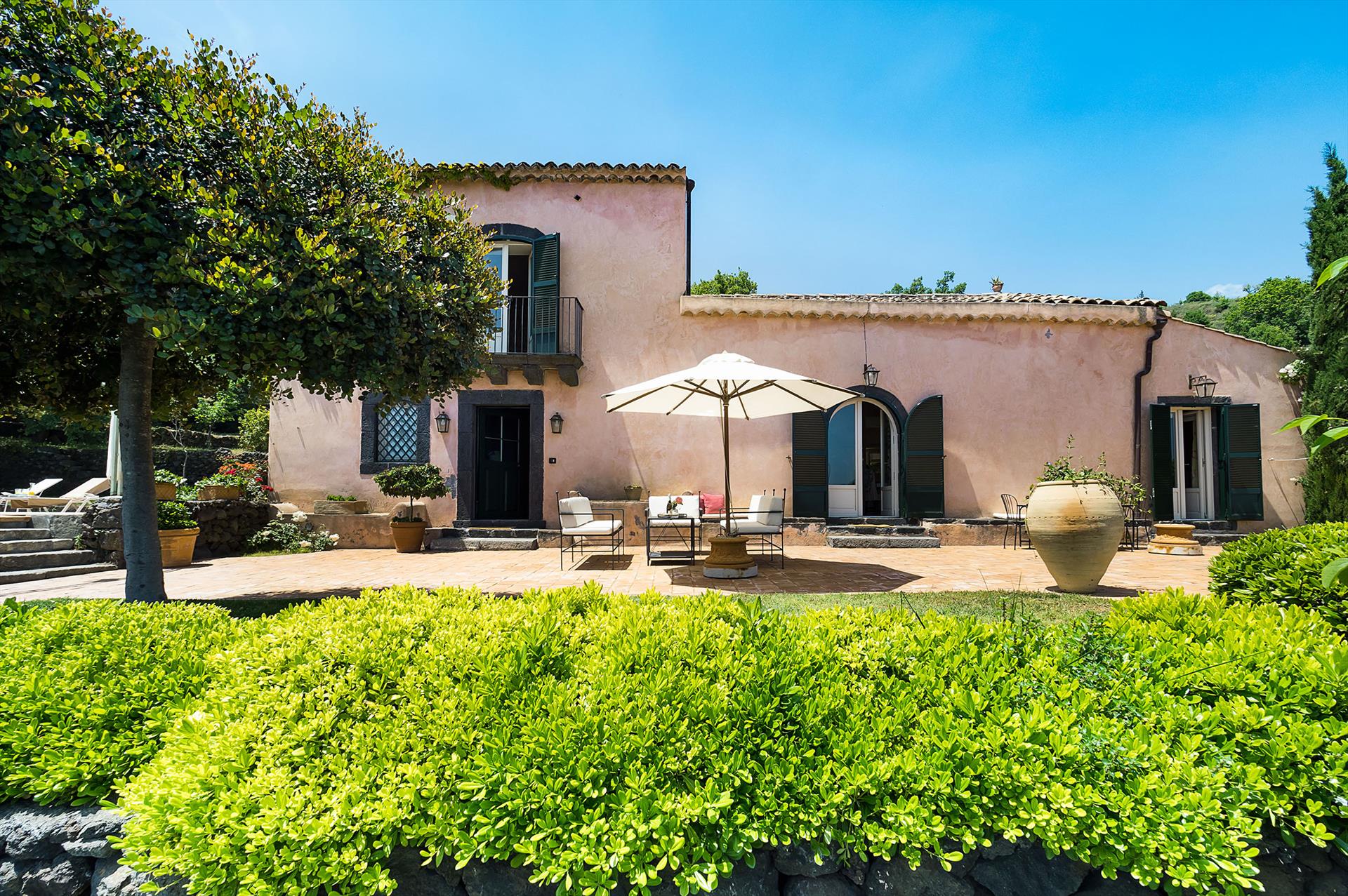 Villa Bellini ist eine herrliche Villa mit Schwimmbad an den Hängen des Ätna, zwischen den charakteristischen Dörfern Zafferana Etnea und Trecastagni. In ruhiger, sonniger Panoramalage gelegen, genießt das Anwesen einen bezaubernden Blick auf den Berg Ilice, der sich hinter ihm erhebt, während sich vor ihm der Blick über die Landschaft und das Meer erstreckt. Umgeben von einem gepflegten Garten, der das schöne, mit Salz gereinigte (chlorfreie) Schwimmbad und die großzügigen, ausgestatteten Terrassen umschließt, ist Villa Bellini der ideale Aufenthaltsort für alle, die Ruhe und direkten Kontakt zur Natur suchen. Die gemütlichen Innenräume der Villa, die sich durch eine romantische und raffinierte Atmosphäre auszeichnen, bestehen im Erdgeschoss aus einem großen Wohn-Esszimmer mit Küche, einem Doppelzimmer, einem Schlafzimmer mit französischem Bett, einem Einzelzimmer und zwei Badezimmern, von denen eines mit einer Dusche ausgestattet ist. Im Obergeschoss befindet sich das Hauptschlafzimmer mit einem Badezimmer mit Badewanne und Dusche. Die Villa ist auch mit Wi-Fi, Sat-TV, Waschmaschine und Geschirrspüler ausgestattet. Von der Villa aus sind neben der Naturlandschaft und den Dörfern des Ätna-Parks auch die interessantesten Orte der ionischen Küste wie Taormina, Catania und Syrakus in wenigen Kilometern zu erreichen.
