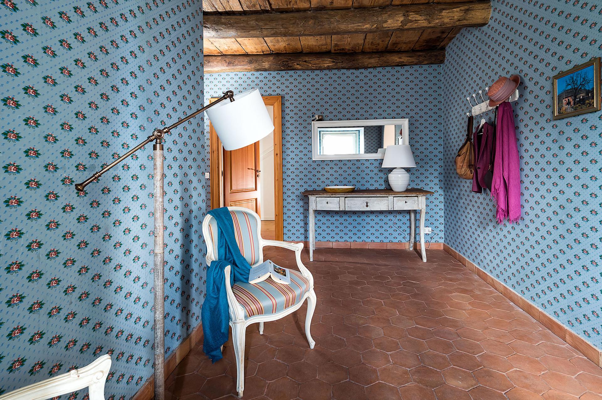 Erdgeschoss: Eingang, Wohn-/Esszimmer mit (Zier-)Kamin, Küche, Waschküche, 1 Schlafzimmer mit Doppelbett, 1 Schlafzimmer mit französischem Bett, 1 Einzelzimmer, 1 Badezimmer mit Dusche, 1 Badezimmer (WC, Bidet und Waschbecken). Erster Stock: 1 Doppelzimmer mit Bad mit Wanne und Dusche.